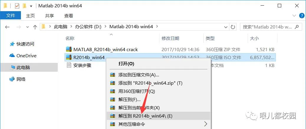 1.解压安装文件,安装文件为iso格式,但是不能通过虚拟光驱安装,需要将iso文件用解压软件解压。鼠标右击“R2014b_win64”压缩包,选择“解压到R2014b_win64”,然后等待解压完成(注意:32位的用户,完整的安装包应该有12个压缩包,必须要全部下载完成才能解压。直接解压“thMMR14b_W32b.part01”即可,然后等待解压完成!后面的安装步骤一样)
