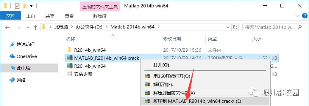 2.鼠标右击“MATLAB_R2014b_win64 crack”压缩包,选择“解压到MATLAB_R2014b_win64 crack”,然后等待解压完成