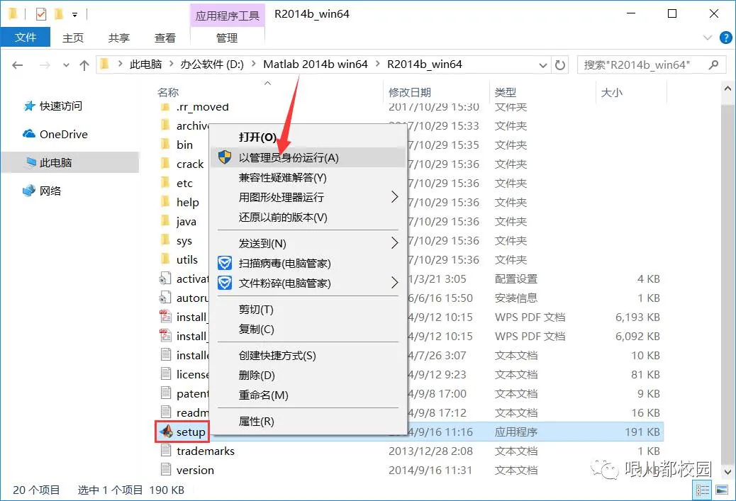 3.打开“R2014b_win64”文件夹,鼠标右击“setup”,选择“以管理员身份运行”