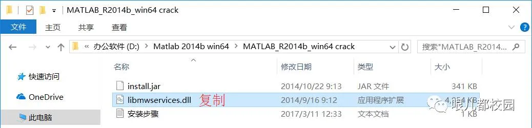 14.打开“Matlab 2014b win64\MATLAB_R2014b_win64 crack”文件夹,复制“libmwservices.dll”文件