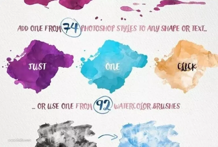 水彩手绘图形图层样式&PS笔刷 | 免费下载! | 持续更新中…