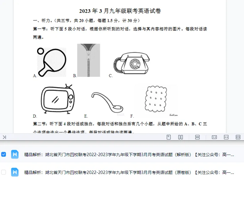 通过网盘分享的文件:【免费下载】精编湖北省天门市四校联考20222023学年九年级下学期3月月考英语试题