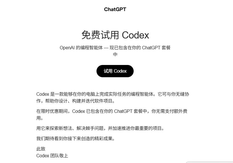 提示:新版 Codex 已包含在您的计划中,免费使用至 3 月 2 日——让我们一起构建吧。 -