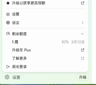 App的设置中可以查看剩余额度: