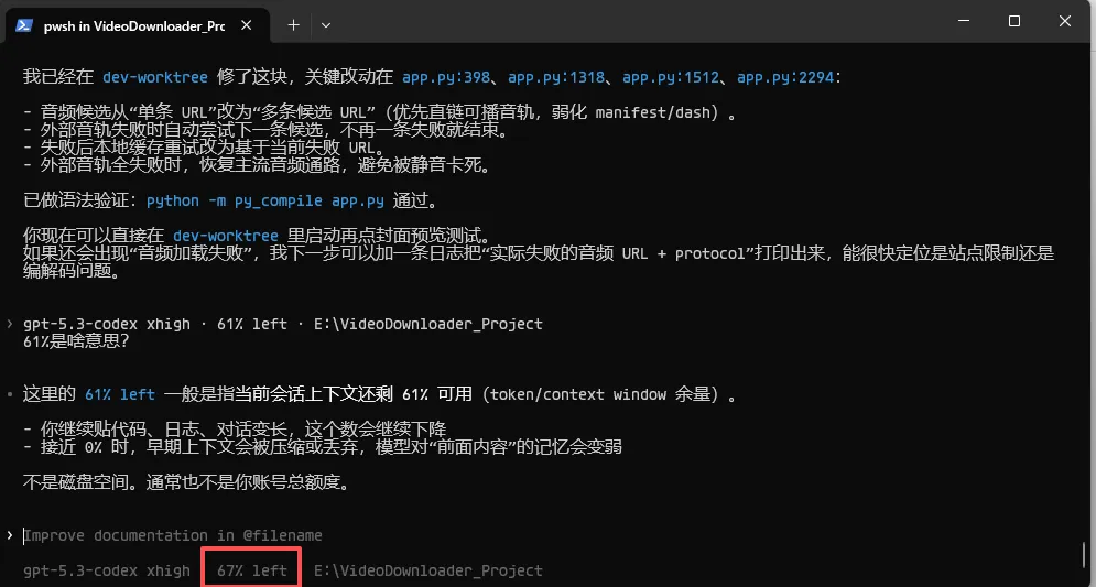 cli界面下方的百分比是:当前会话上下文窗口长度限制的剩余百分比,不是账号的codex使用额度