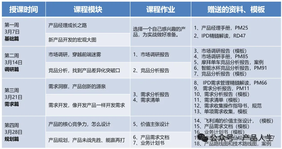 8节直播课,共分4个篇章:基础篇、调研篇、需求篇和规划篇。