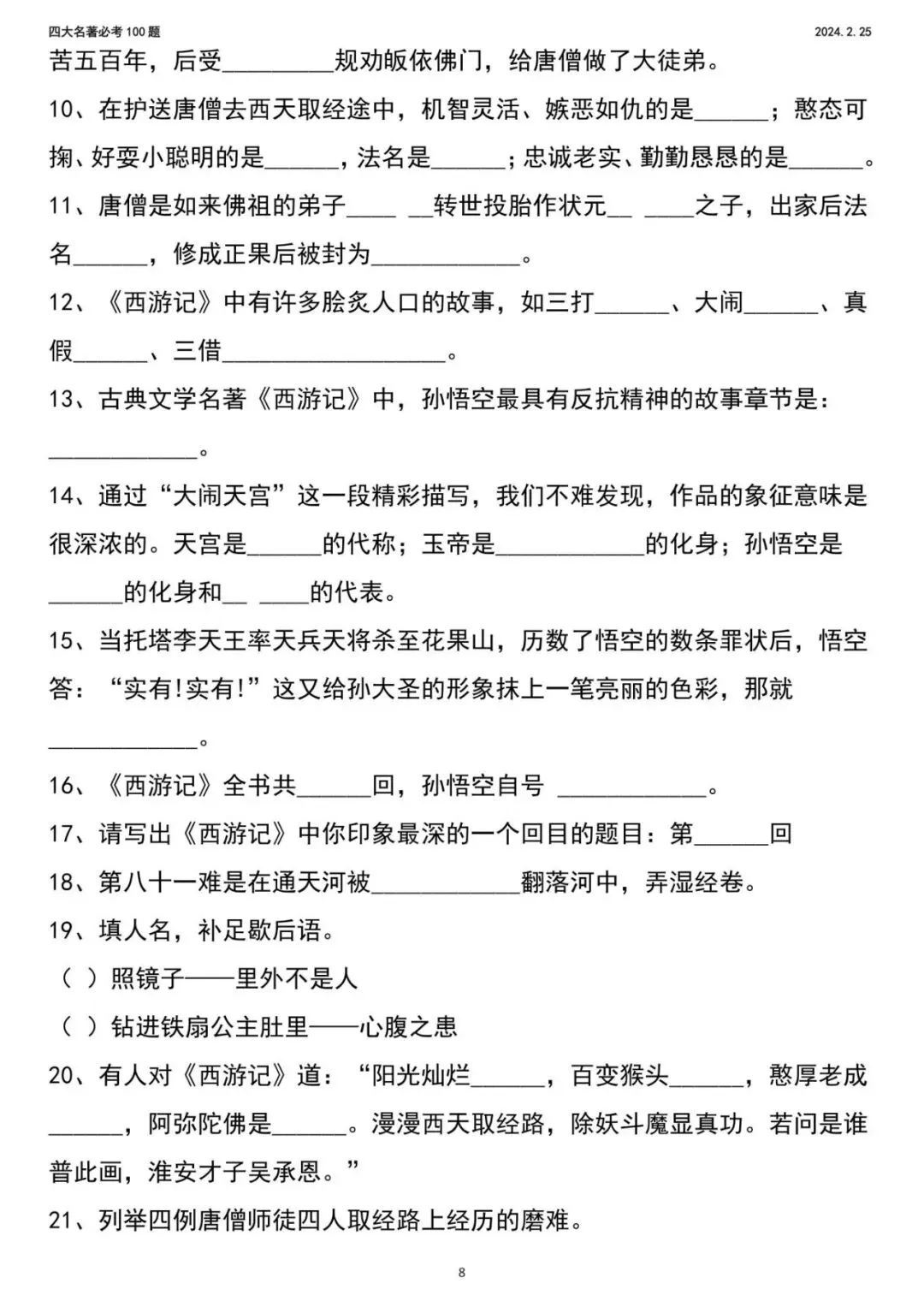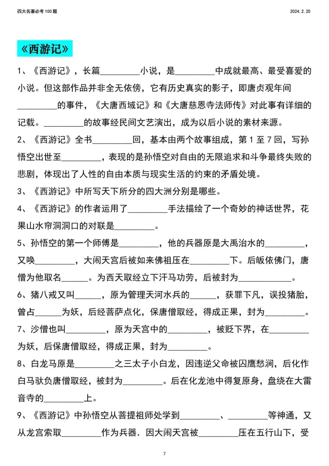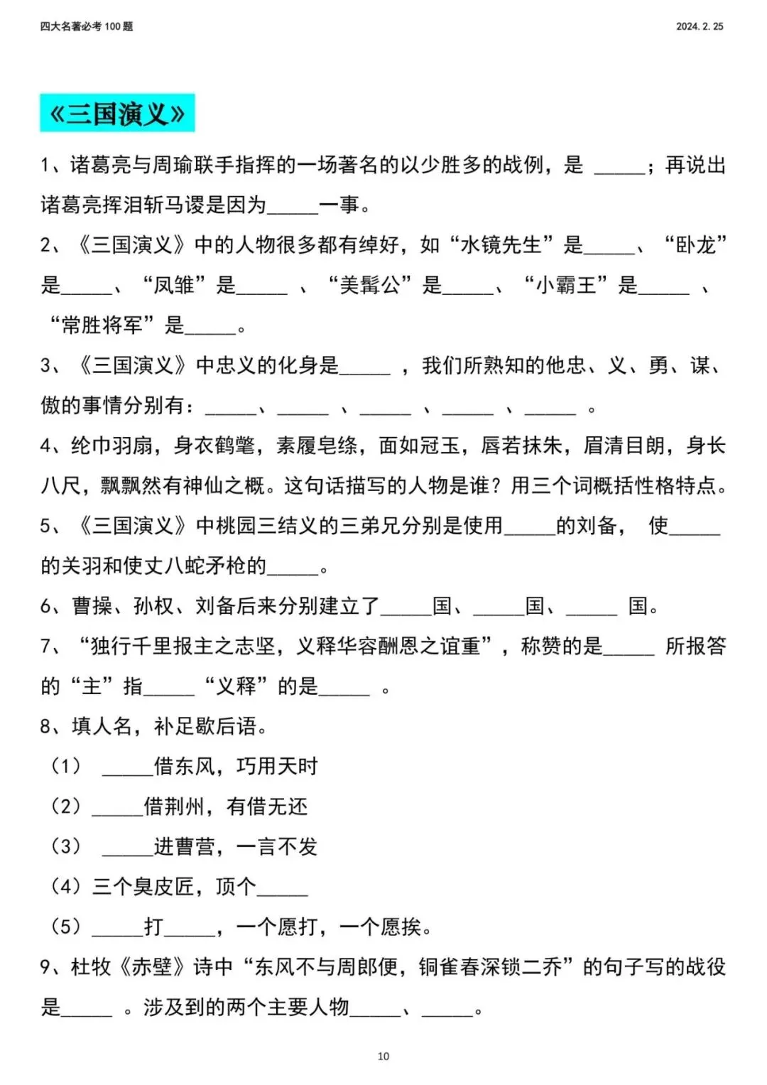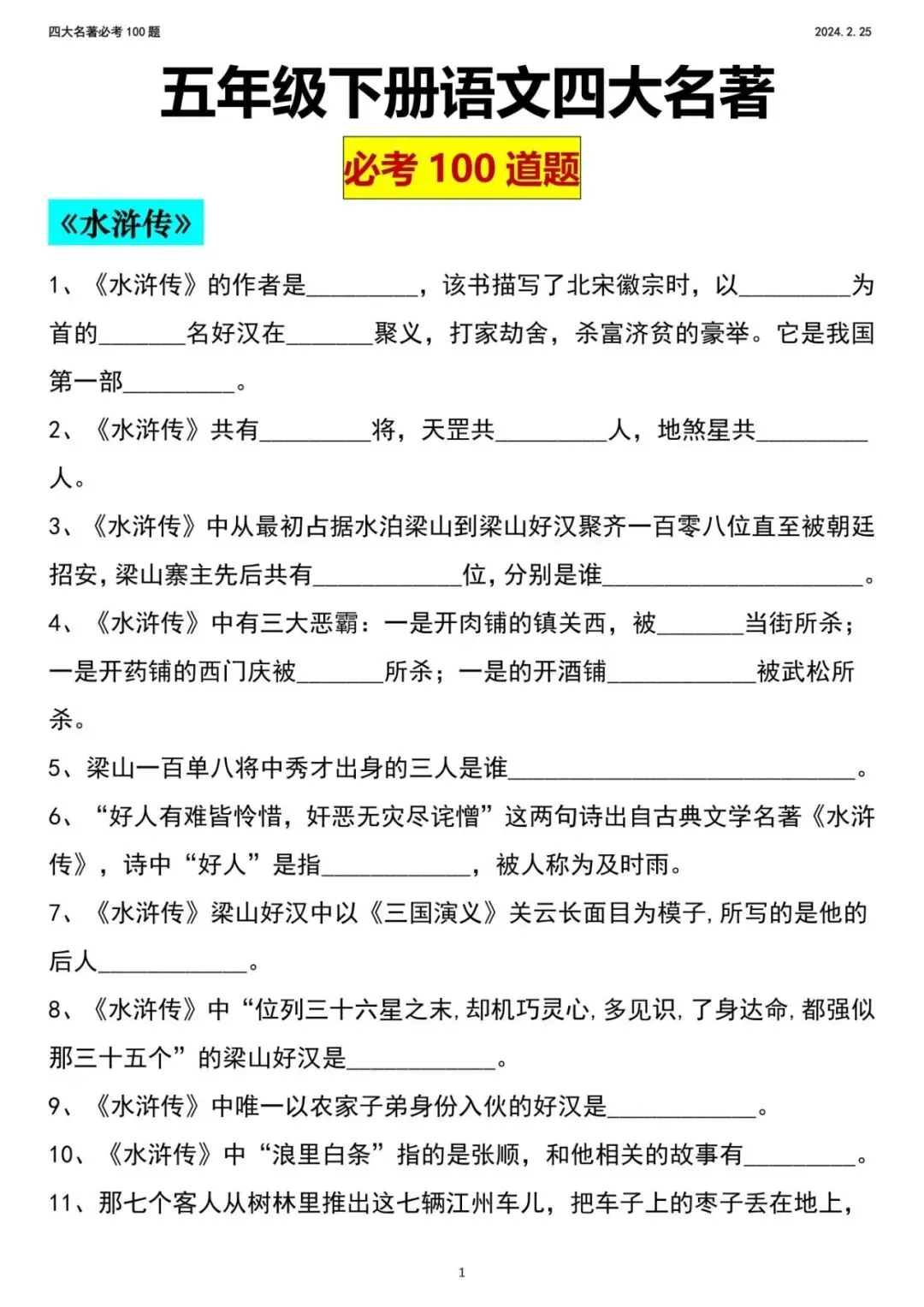 2026年新五年级下册语文四大名著,包含人物、年代、事件,电子版可下载,需要的家长打印出来,给孩子练一练吧!