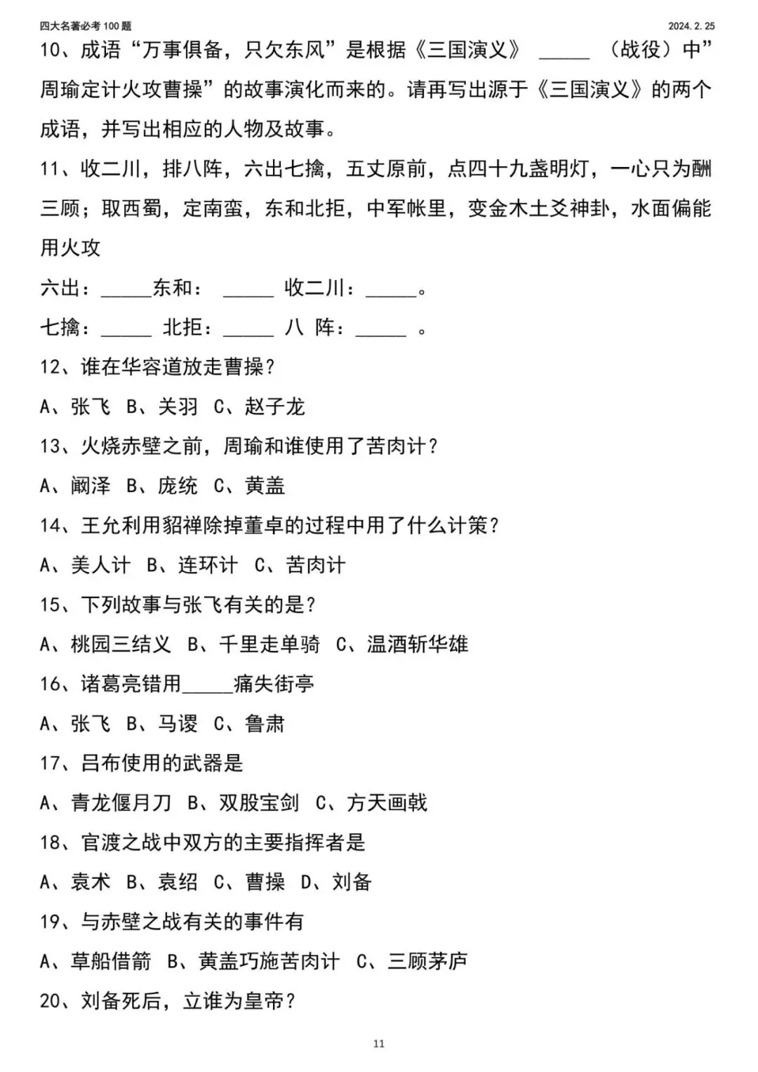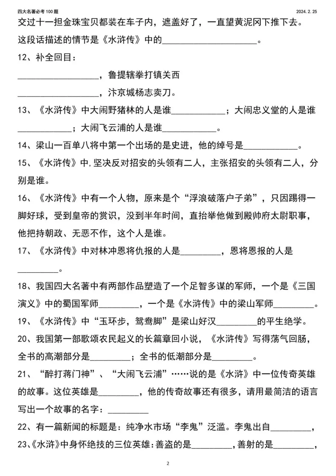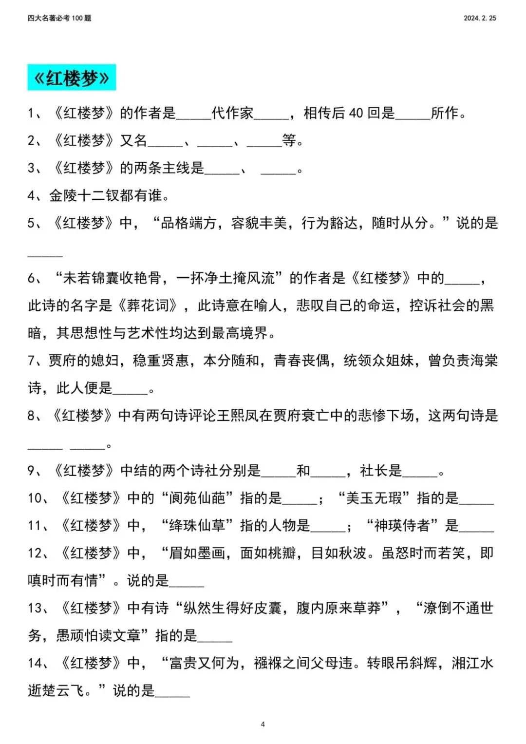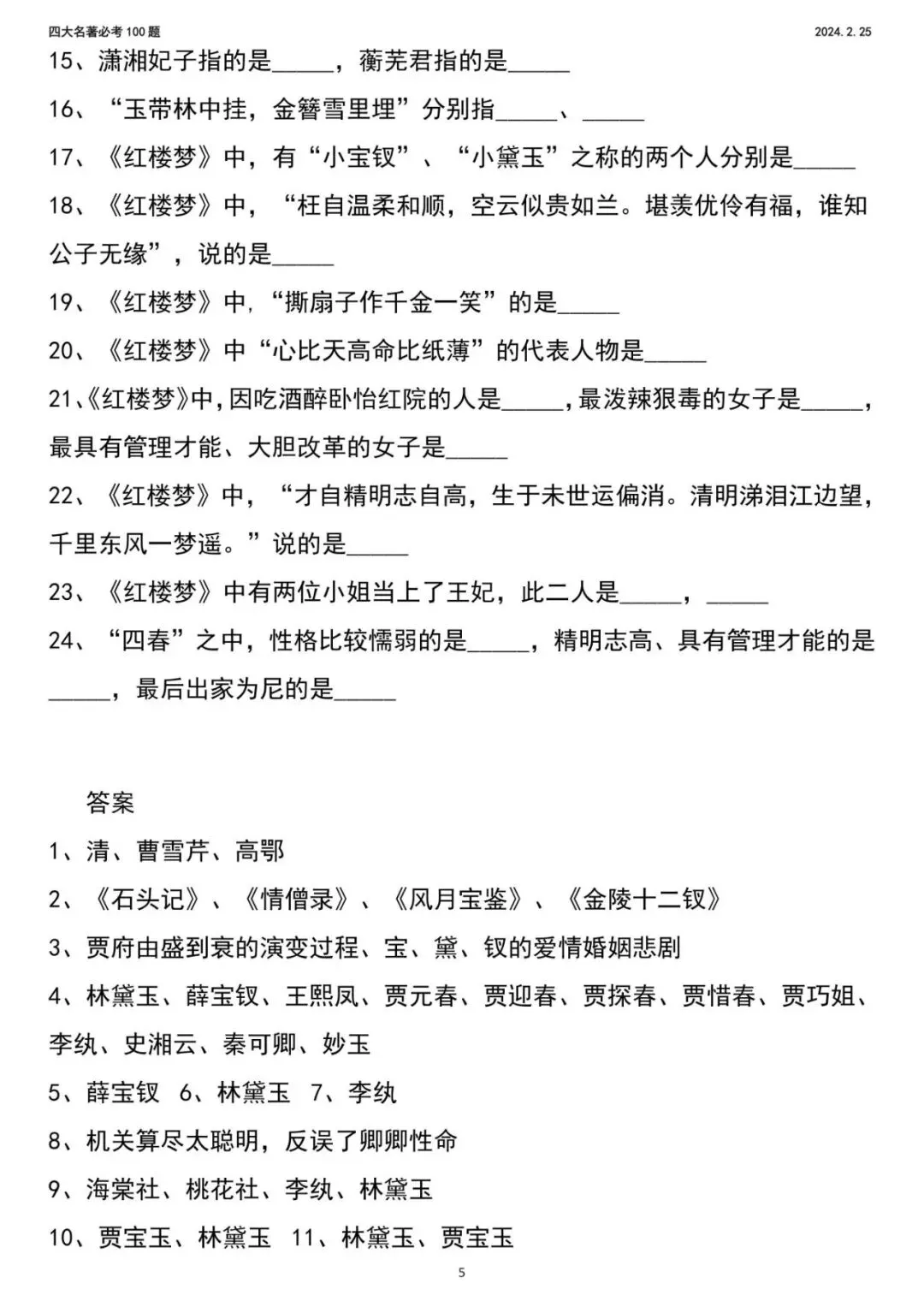 2026年新五年级下册语文四大名著,包含人物、年代、事件,电子版可下载,需要的家长打印出来,给孩子练一练吧!
