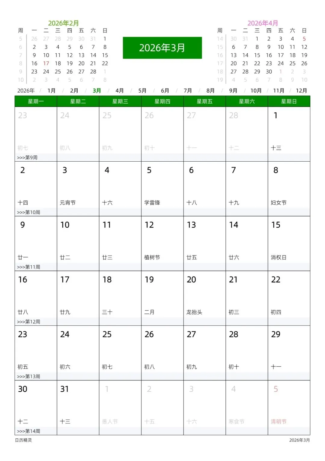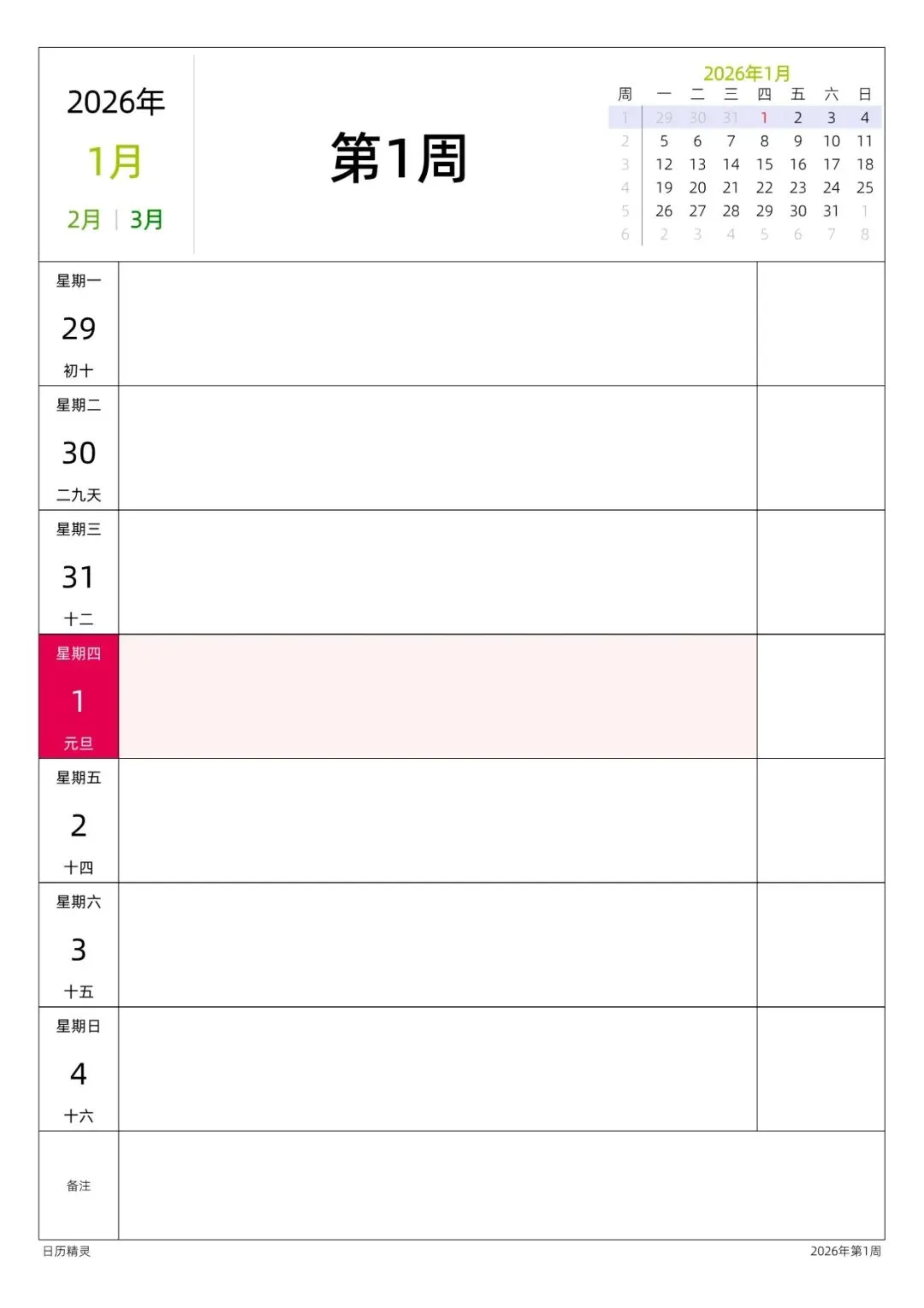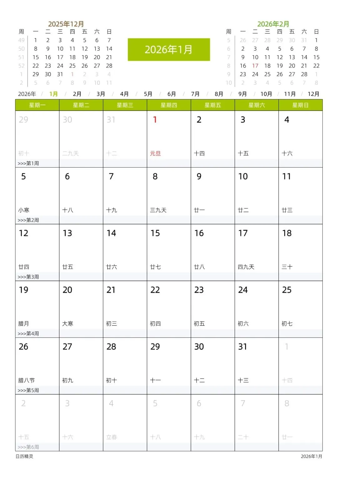 【《2026年日历》高清电子版模板日历月历年历挂历工作学习目标计划手抄报(可下载,可打印,网盘下载链接)】