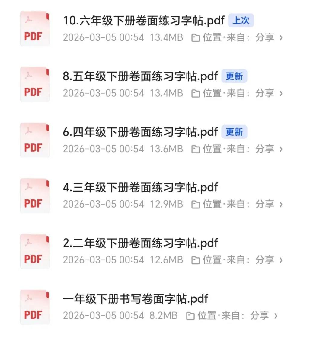(免费领)1-6年级下册书写卷面字帖,PDF版,可下载可打印