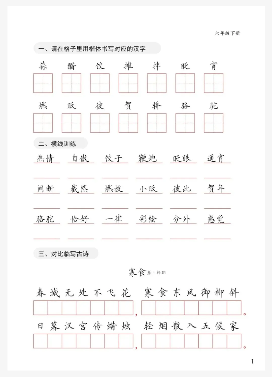 ❤️六年级下册书写卷面字帖链接: