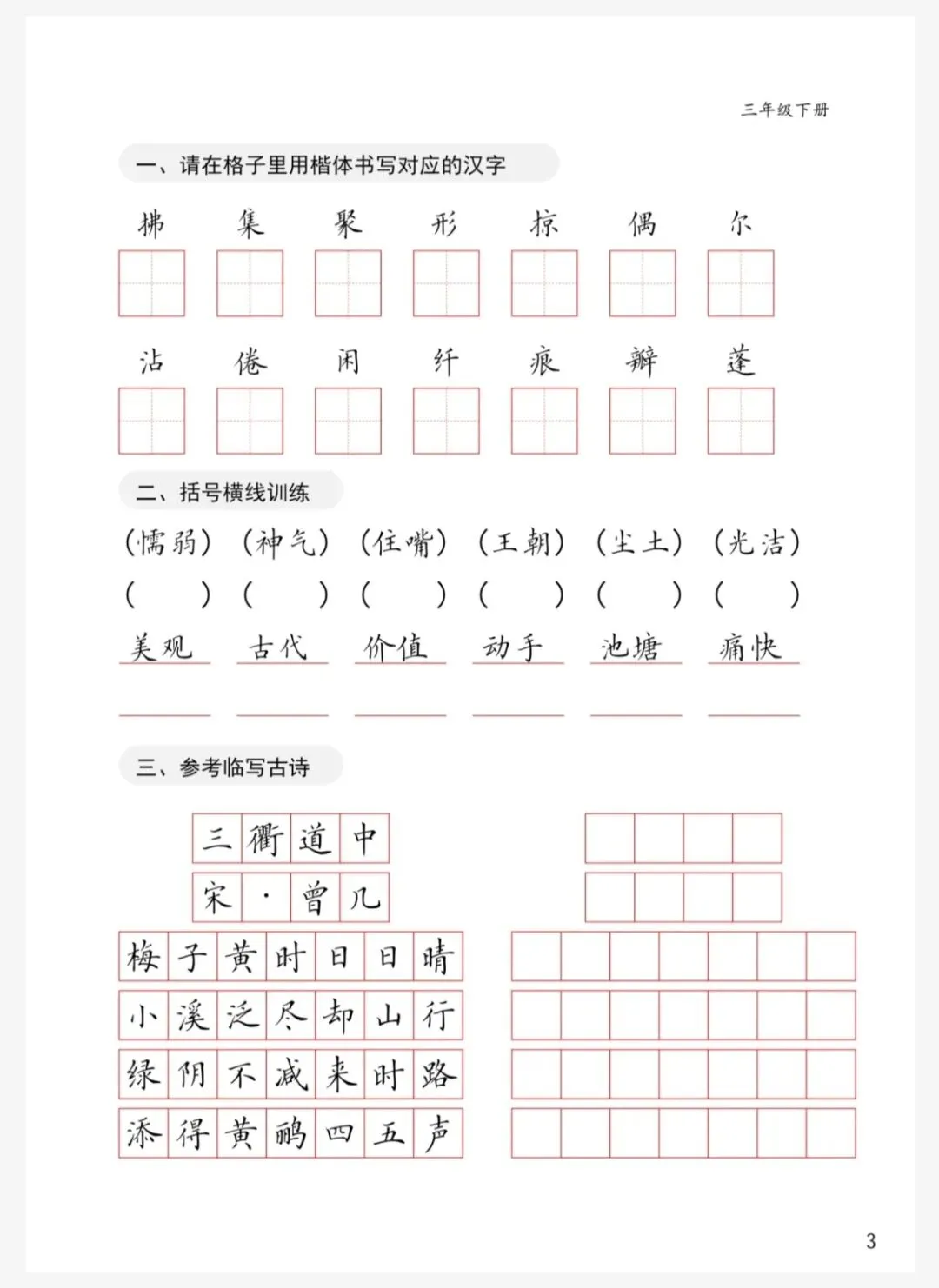 ❤️三年级下册书写卷面字帖链接: