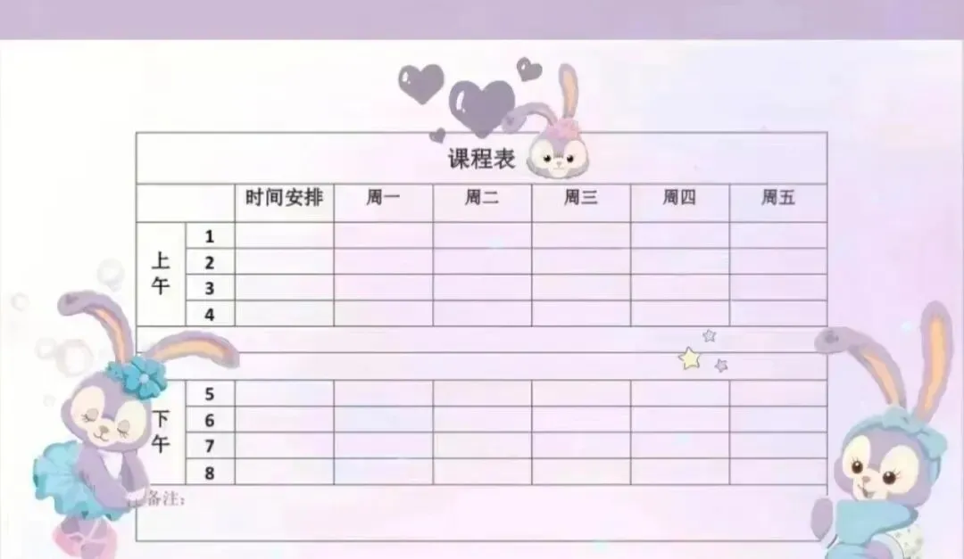 开学季可爱课程表模板(电子版可打印),免费下载