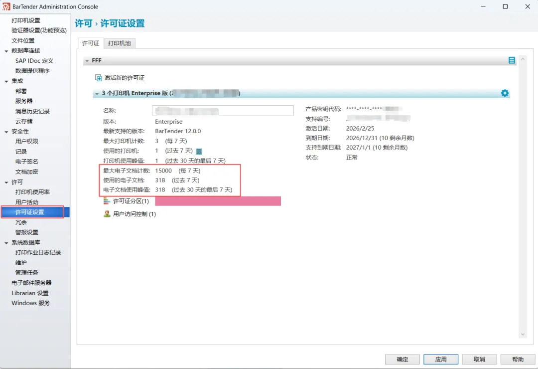 BarTender2022R3(包含R3)以后版本可以在Administration Console里面查看PDF使用情况,如下图:
