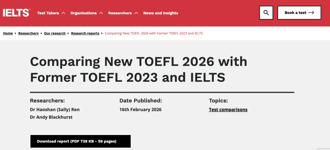 2026年开年,国际教育圈最劲爆的“大瓜”莫过于雅思官方下场质疑新托福。酝酿已久的新版托福(TOEFL iBT 2026)正式落地。紧接着2月16日,雅思官方就毫不客气地甩出一份长达58页的PDF,字里行间都在“公开处刑”新托福。