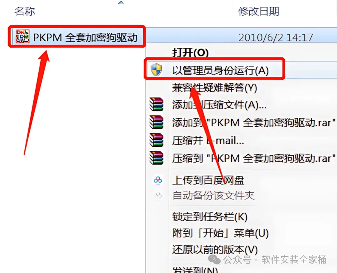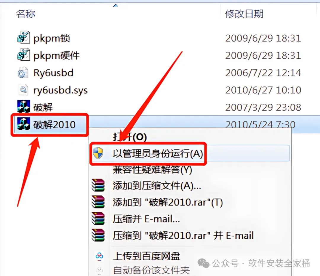 25.在【PKPM-20100926和谐补丁】文件夹中,鼠标右击【破解】文件,选择【以管理员身份运行】。