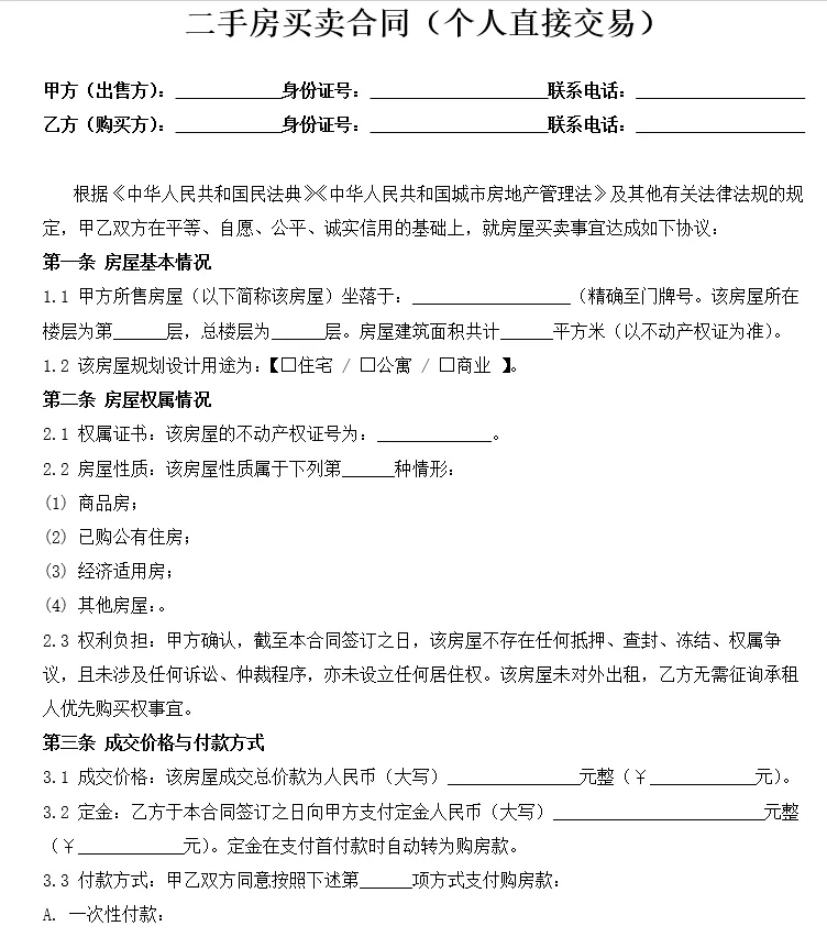 根据《民法典》《城市房地产管理法》及其他有关法律法规的规定,甲乙双方在平等、自愿、公平、诚实信用的基础上,就房屋买卖事宜达成如下协议:
