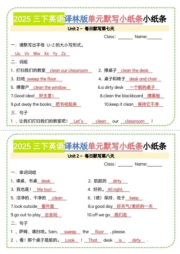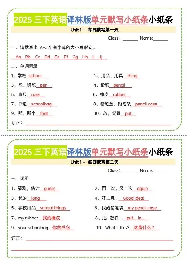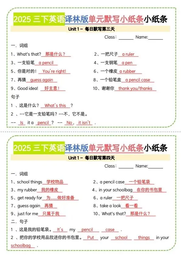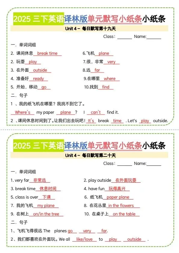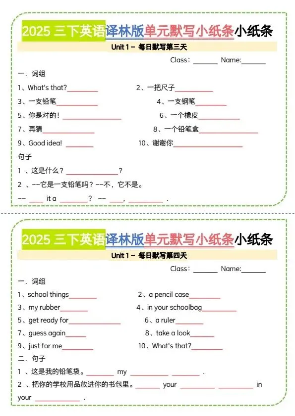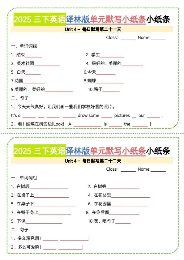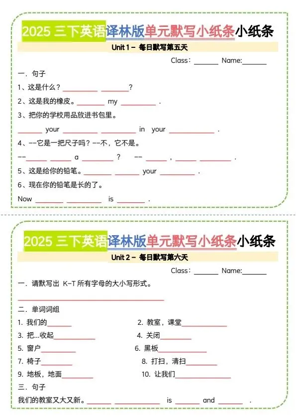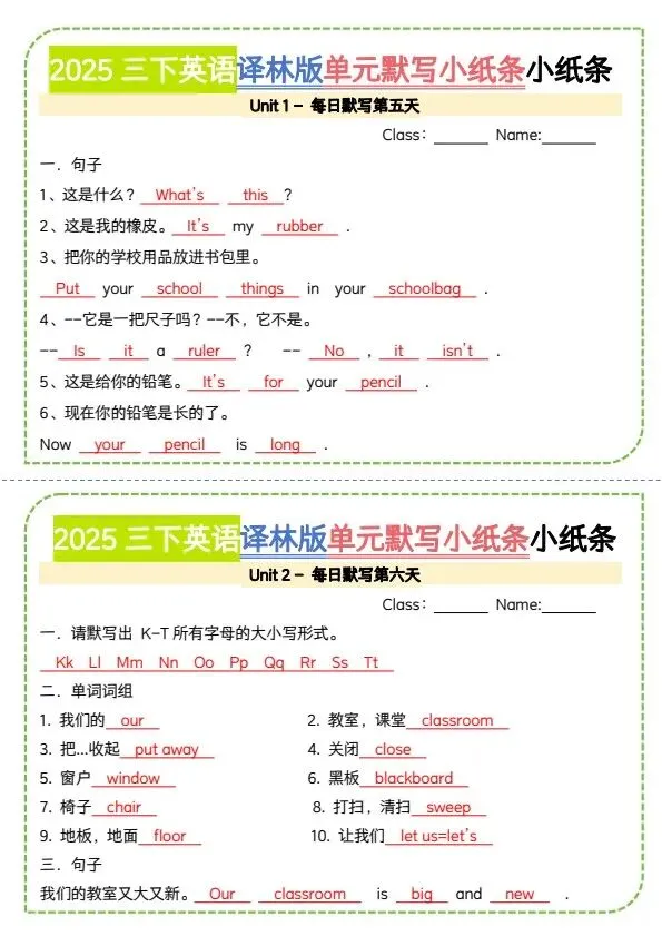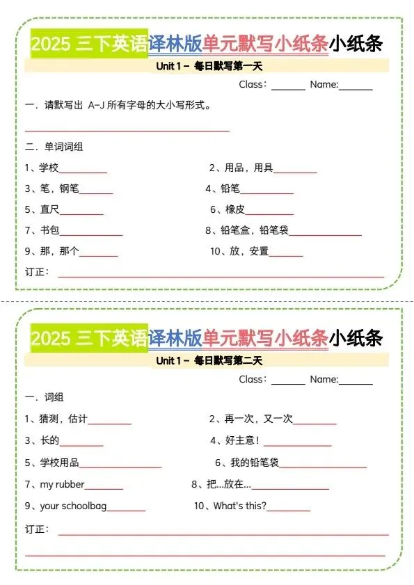今日分享26新译林版三下英语单元默写小纸条(完整电子版可打印)!高清电子版可直接打印,排版规整适配练习,不用费心整理,孩子每日一练夯实基础,家长辅导省心!