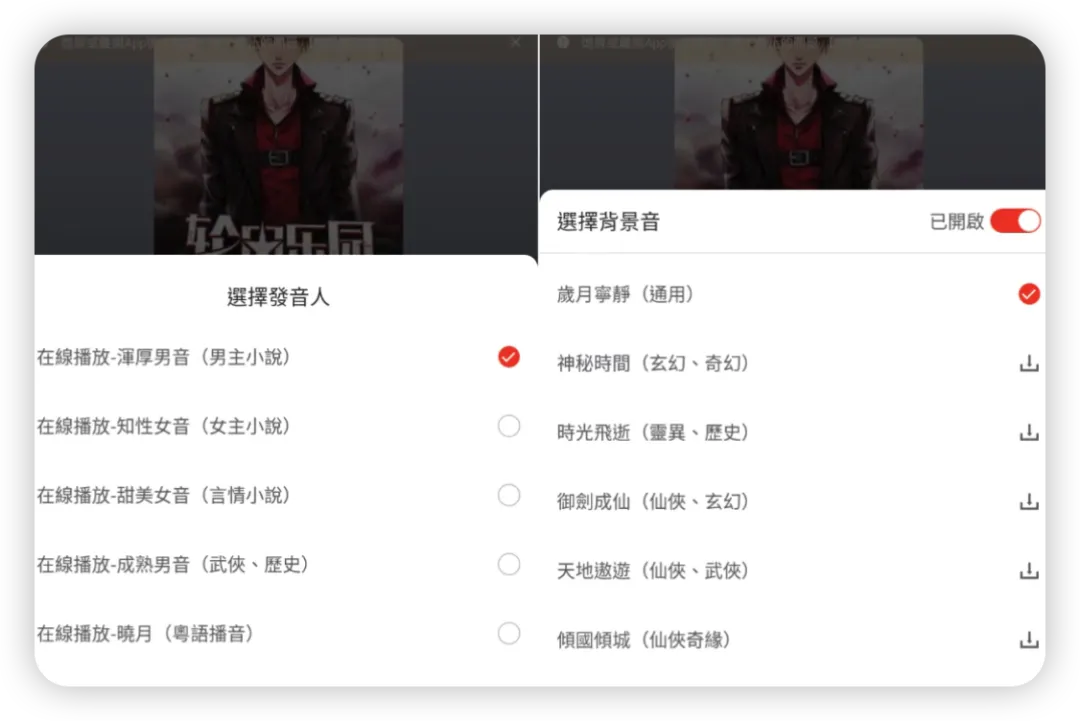 不仅支持九种语音选择,还能自定义背景音乐,带入感极强。