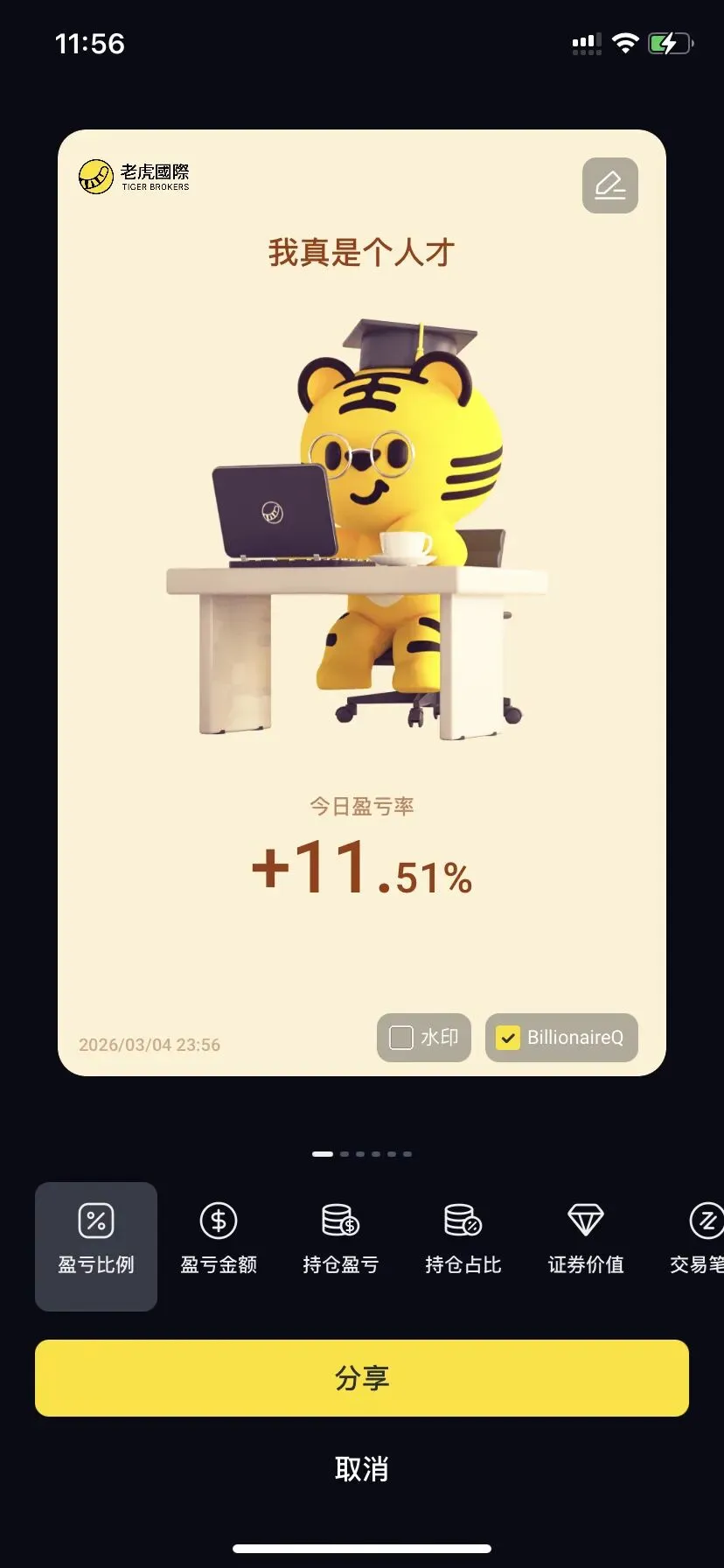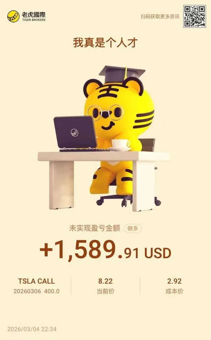 4、⬆️上面聊天记录中其他的盈利小图我也上一下⬇️我的单子就不咋晒了,今天只有一个TSLA CALL大赚了大概200%,还有重仓的MSTU今天开始盈利了,账户增长了11%左右(有图⬇️)