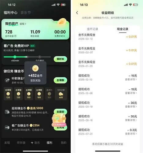 首先确保手机已经按照番茄音乐(原畅听音乐),打开应用进到福利中心,新人每日签到会有现金收益吗,0.1-1元不等,可连续签到7天。