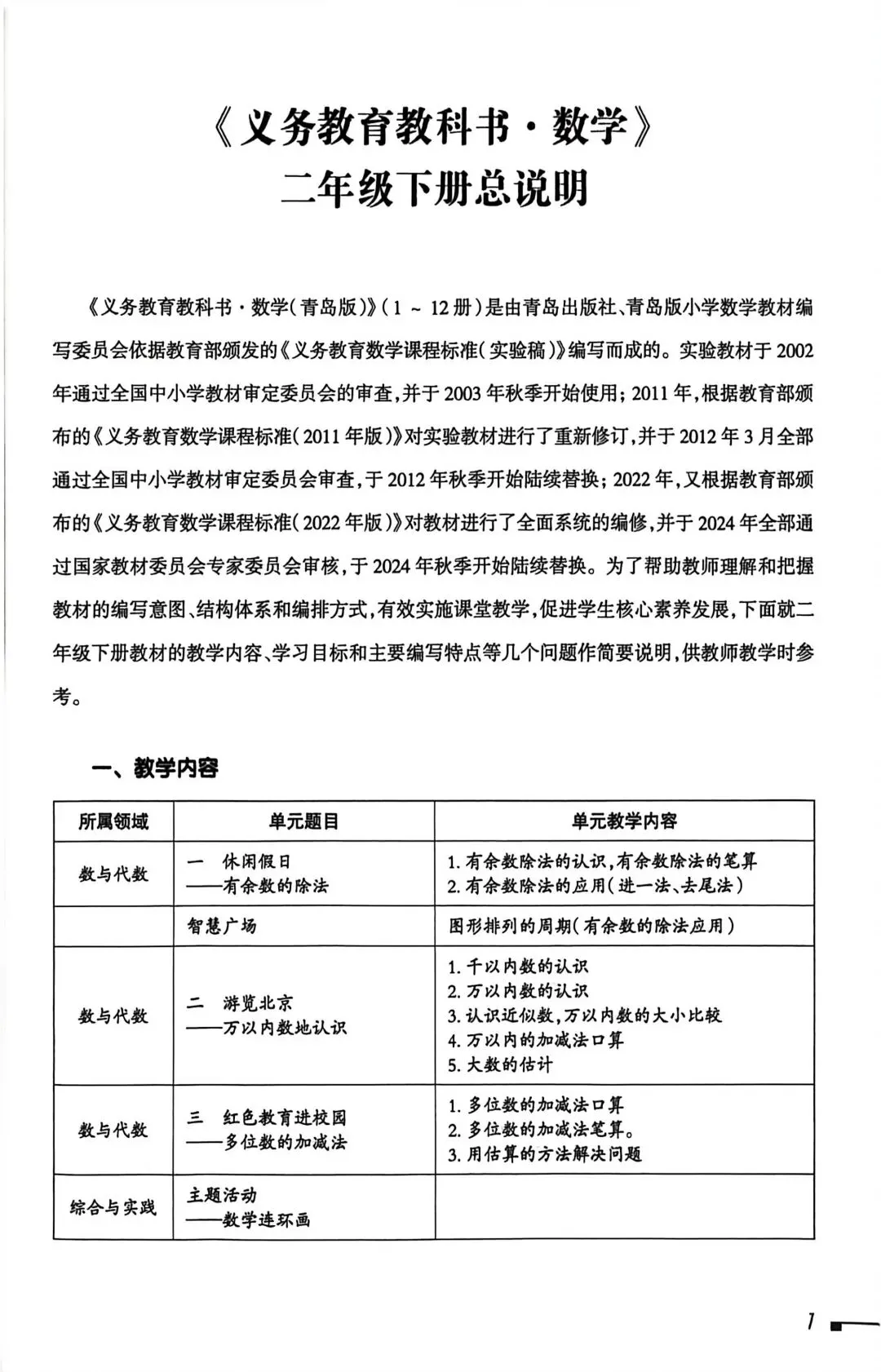 教师用书:二年级下册总说明 《2026春新青岛版二年级数学(下册)教师用书》源于网络公共资源的搜集与整理,仅供个人学习、备课教学参考之用。所有内容的知识产权及相关权益,均归属于原出版机构及原作者所有。 声明:本文整理自网络,如有侵权,请联系删除。