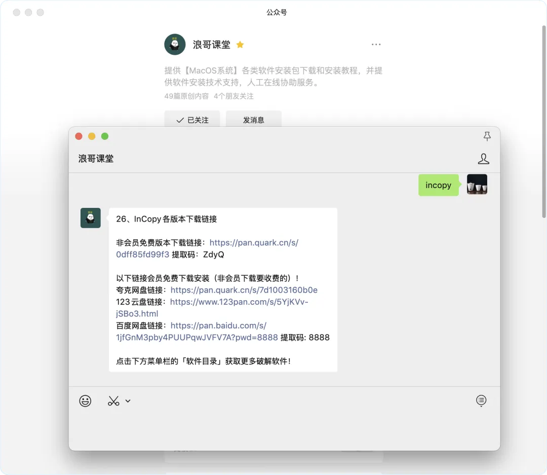在「浪哥课堂」公众号后台回复:InCopy ,即可获取网盘下载链接!
