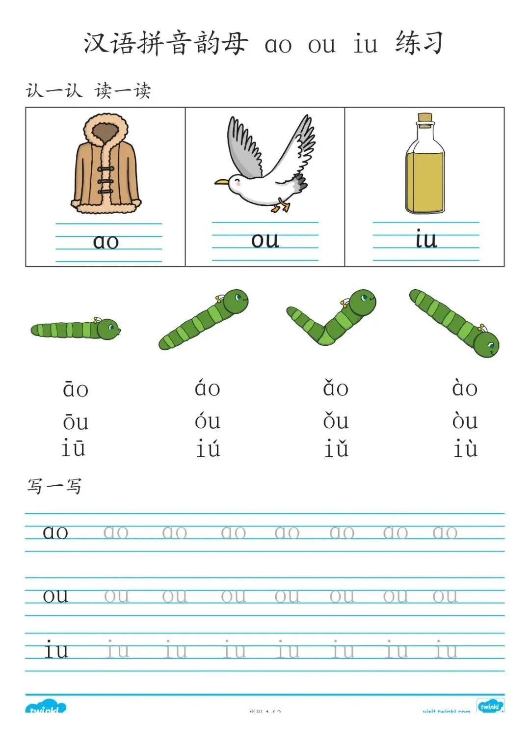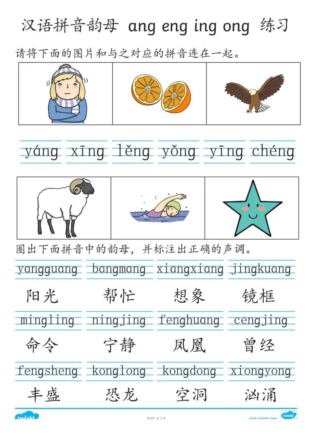 幼儿汉语拼音练习+拼音主题闪卡,有PDF电子版可打印,免费领取.