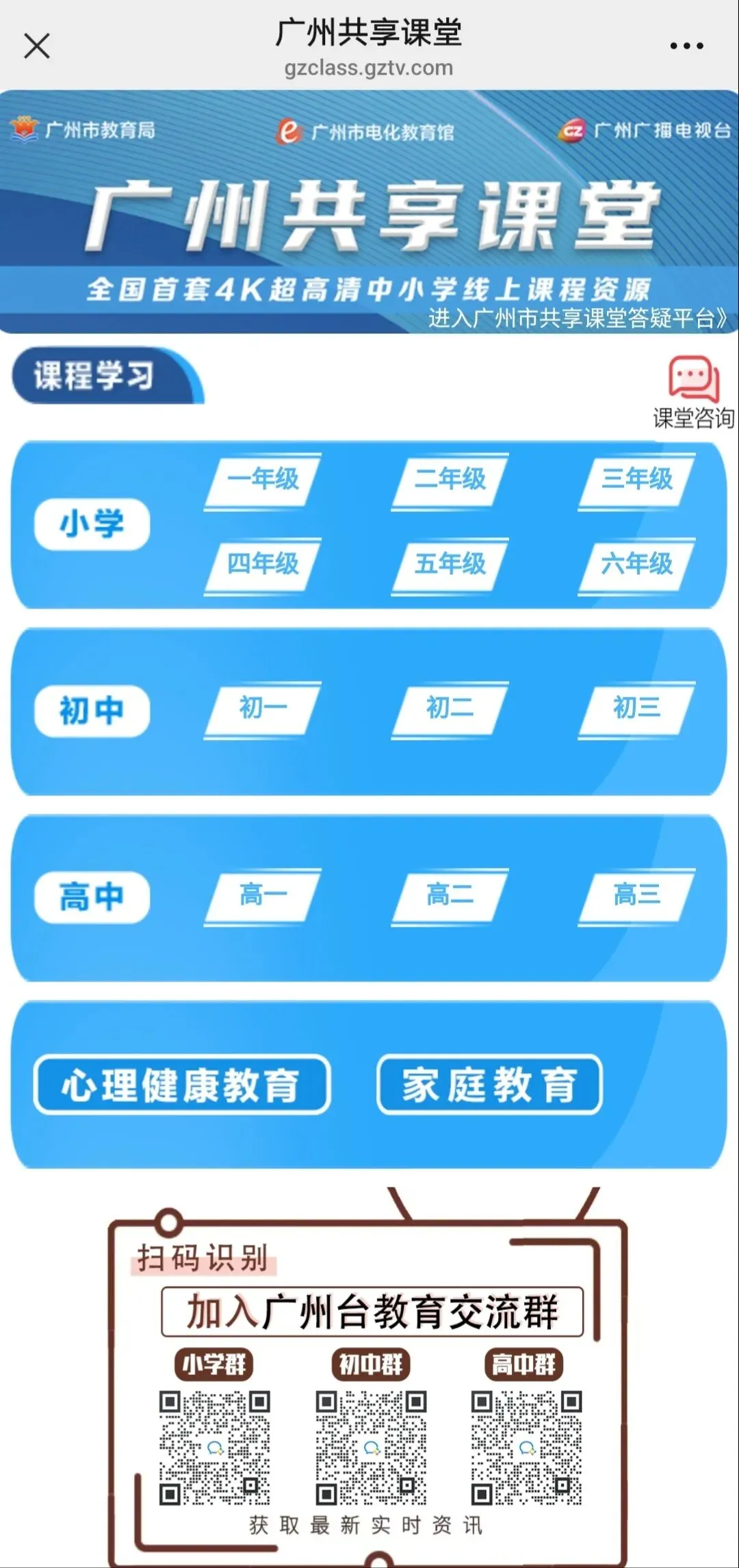 不用安装APP:公众号或网址直达广州共享课堂,横屏更舒服