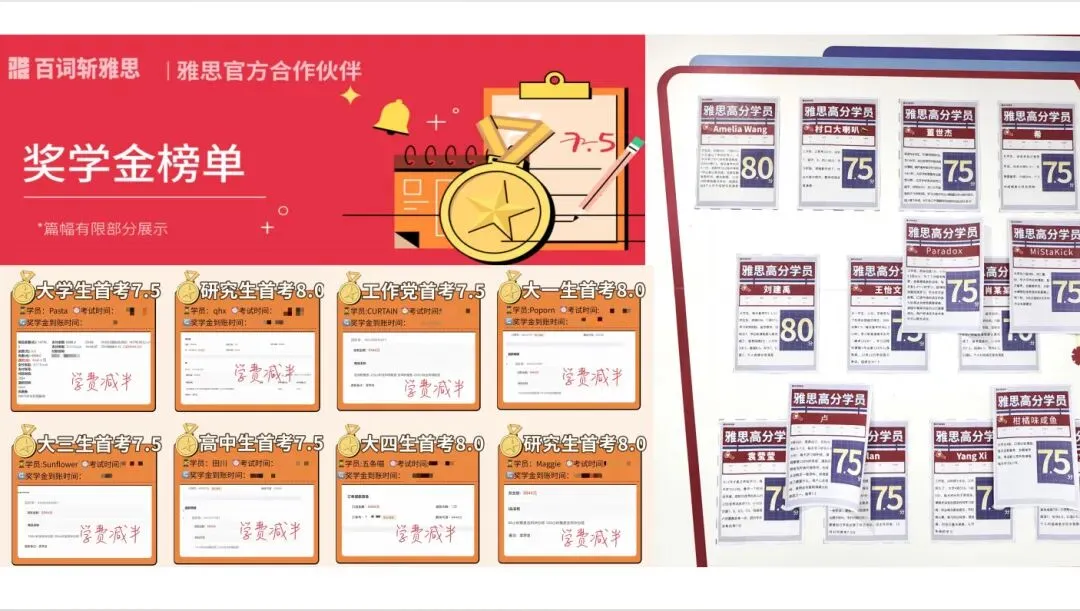 百词斩雅思对所有用户提供6.5分或7分的保分协议,未达条件可免 费 重 修。有底气说保分的课程,说明对课程非常有信心。考完报分7.5分,学费直接减半返现,如果是单科8分,有千元的现金红包,以考促学非常适合学生党、工作党!