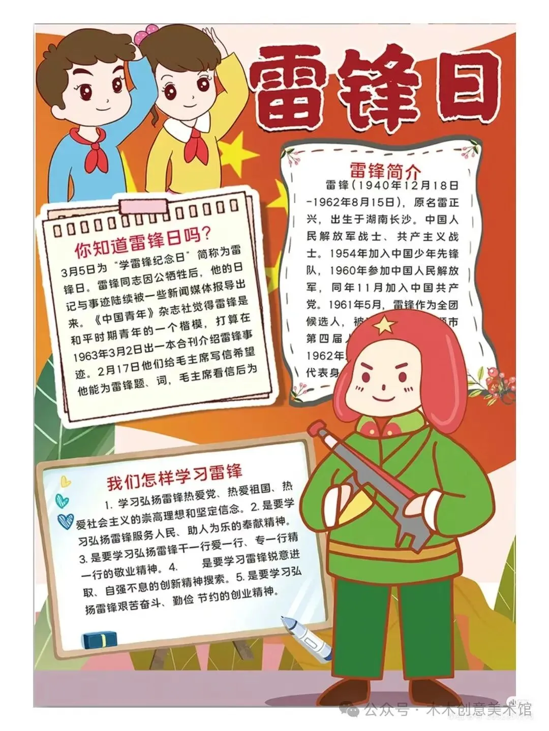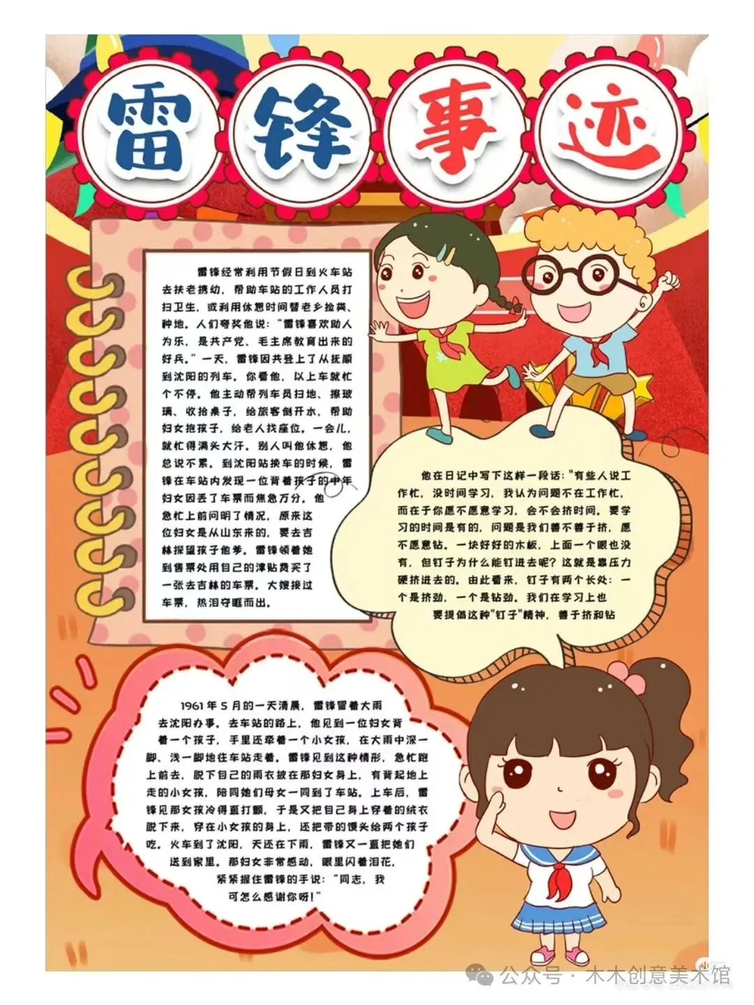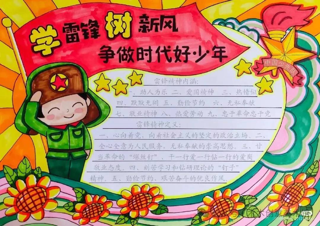 总之,手抄报内容可以融合以上要点,生动全面地展现雷锋精神,激励人们传承和践行雷锋精神,推动社会向更加美好的方向发展。