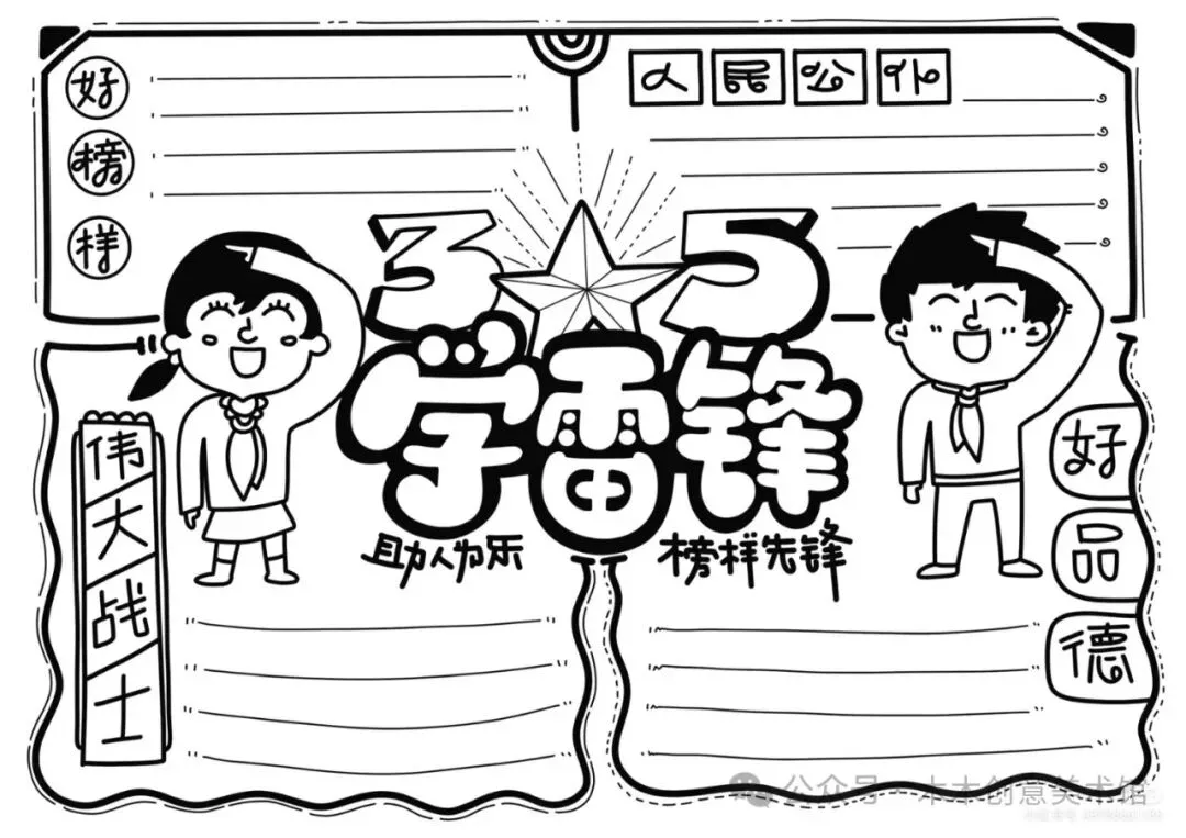 41张~学习雷锋好榜样手抄报最新来袭!可打印黑白线稿,建议收藏防止找不到!
