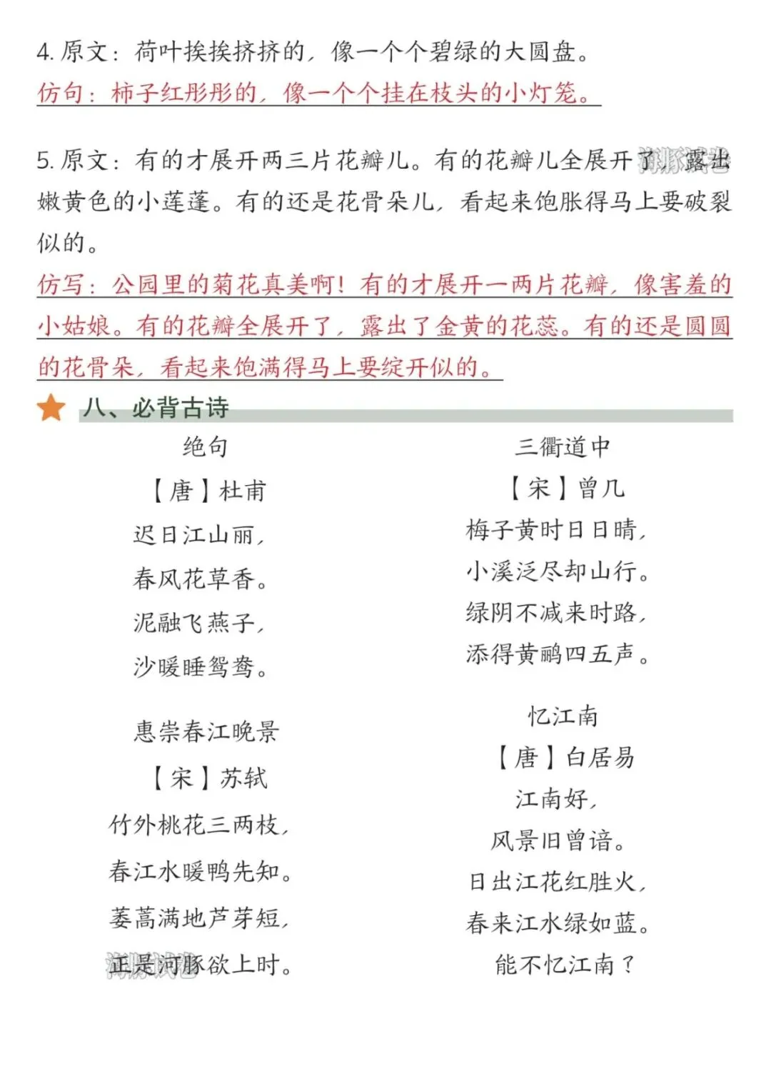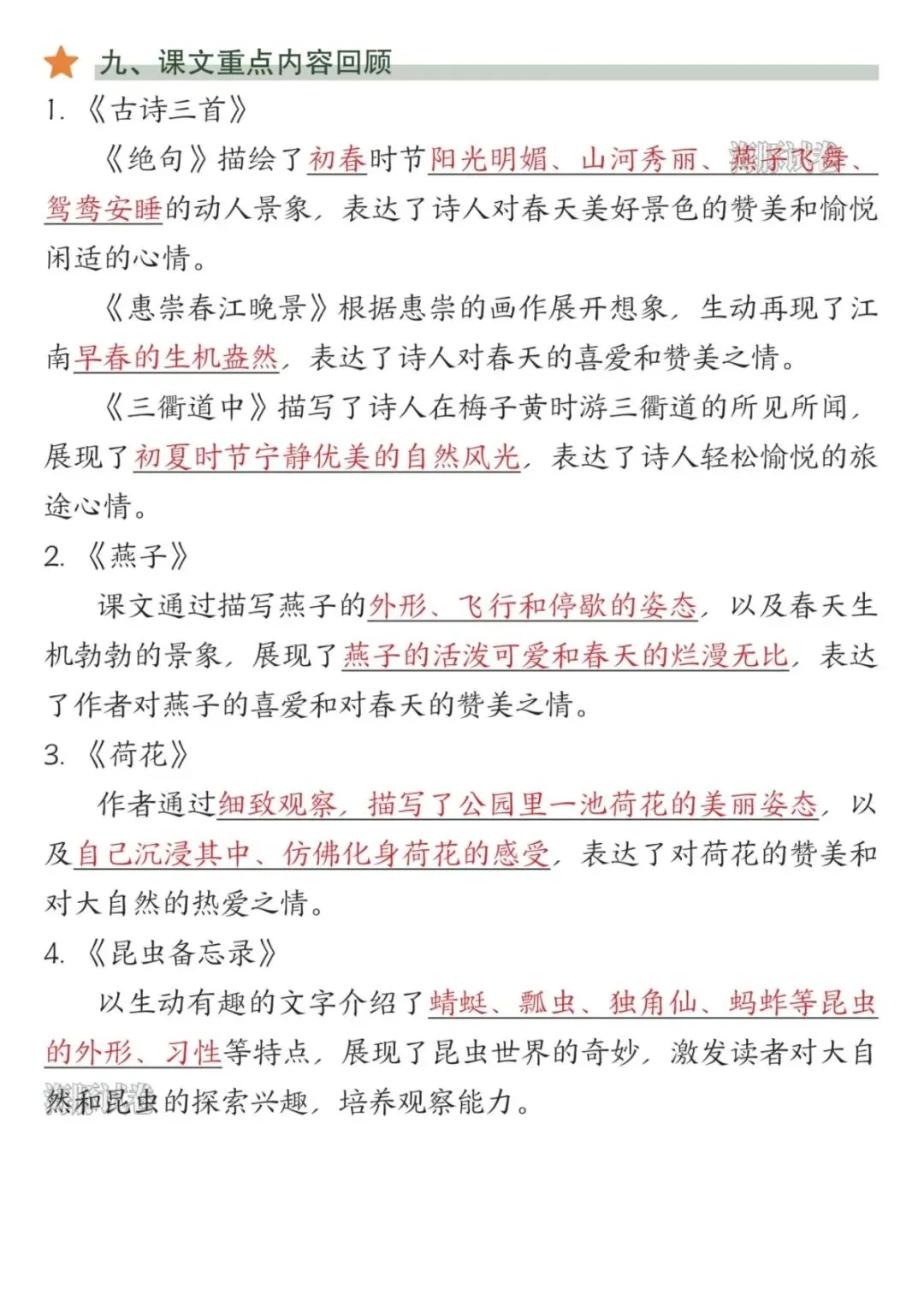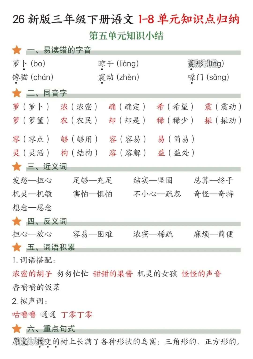 三年级语文下册1-8单元知识点归纳(电子版可打印)