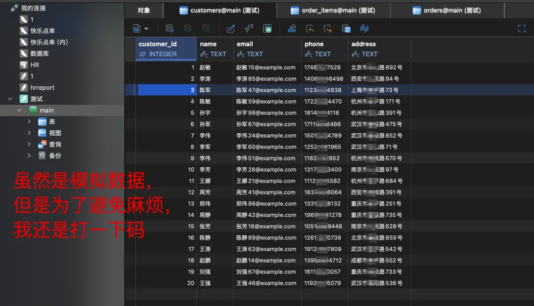而咱们今天的主角 SQLite,它就像一个“单文件版”的数据库工具箱。你不需要安装任何服务器软件,也不用配置什么端口,它就是一个文件(就像Excel的.xlsx文件),你用Python一调用就能用,存数据、查数据都在这个文件里。而且它完全支持我们用Excel思维理解的那套“表、行、列”结构,几乎零学习成本,而且这个数据库你甚至可以把真的当成是一个高级表格,在任何一台电脑上使用我们之后制作的工具,或者支持读取SQLite的软件,就可以类似表格一样打开查看,非常方便。