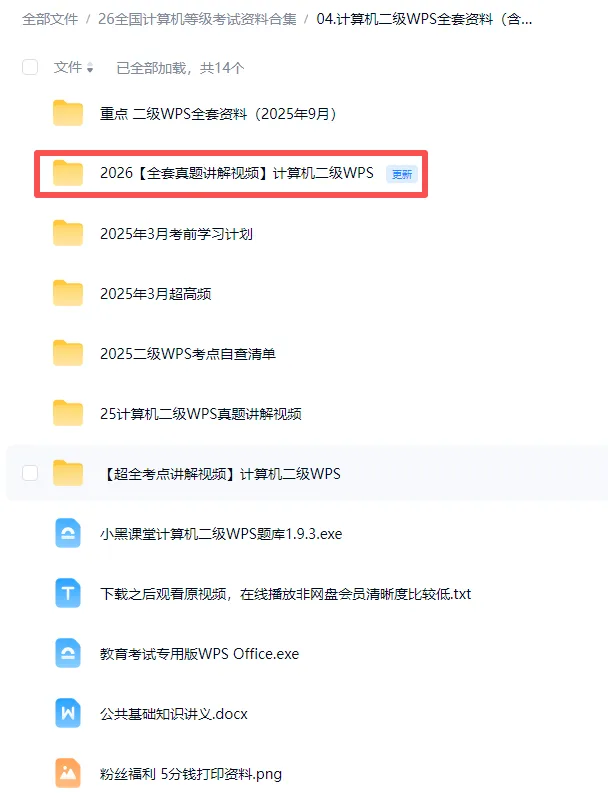 26年3月计算机【二级WPS全套资料】真题视频讲解+题库+考试专用版(题库最新版) 百度+夸克版