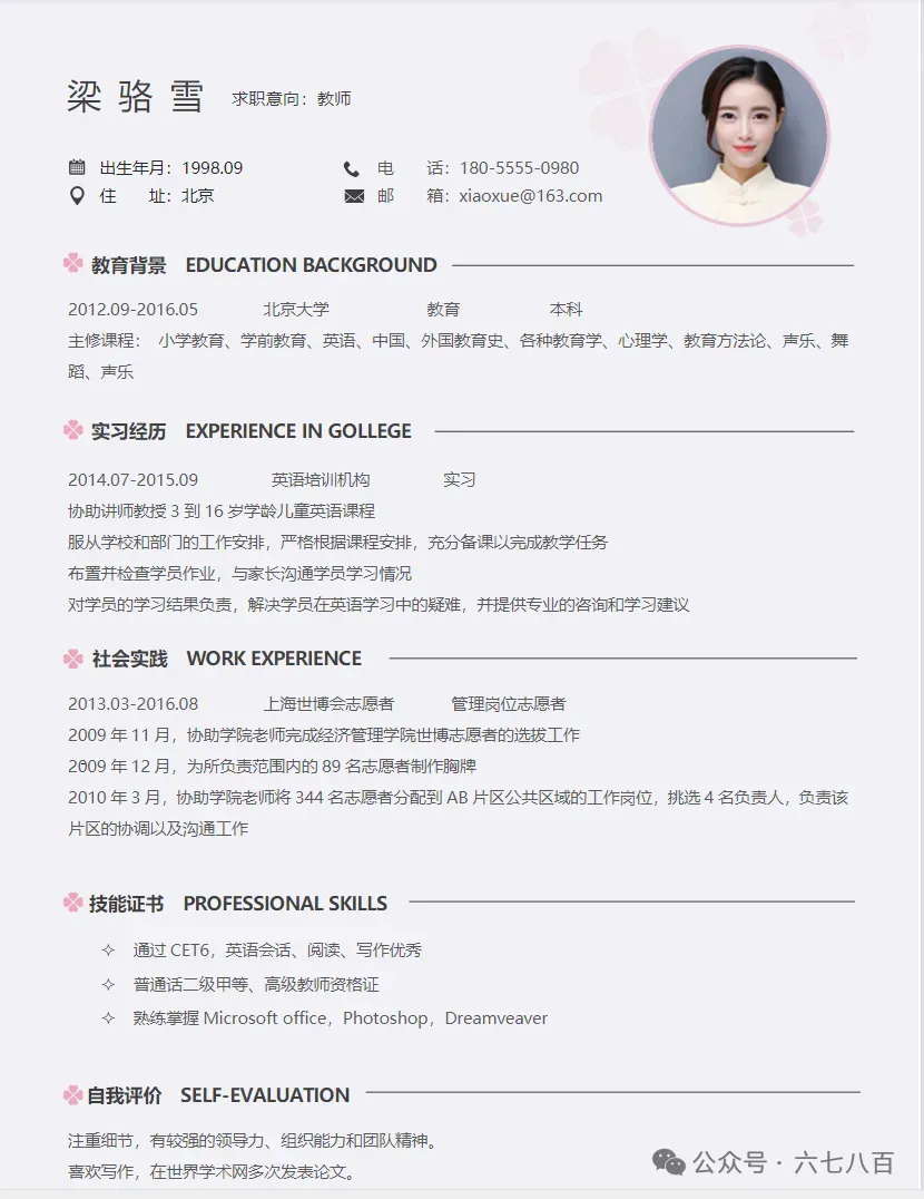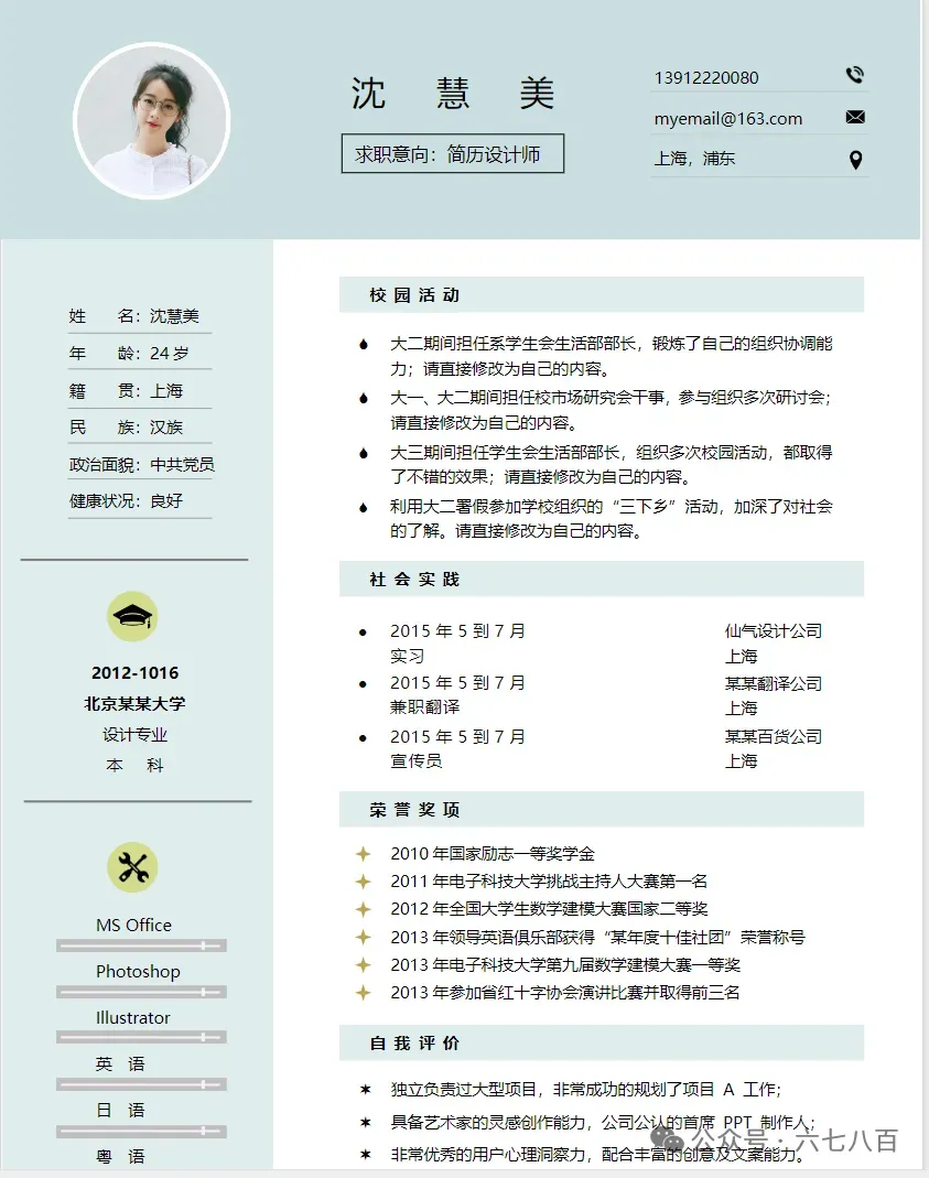 以下部分简历展示
