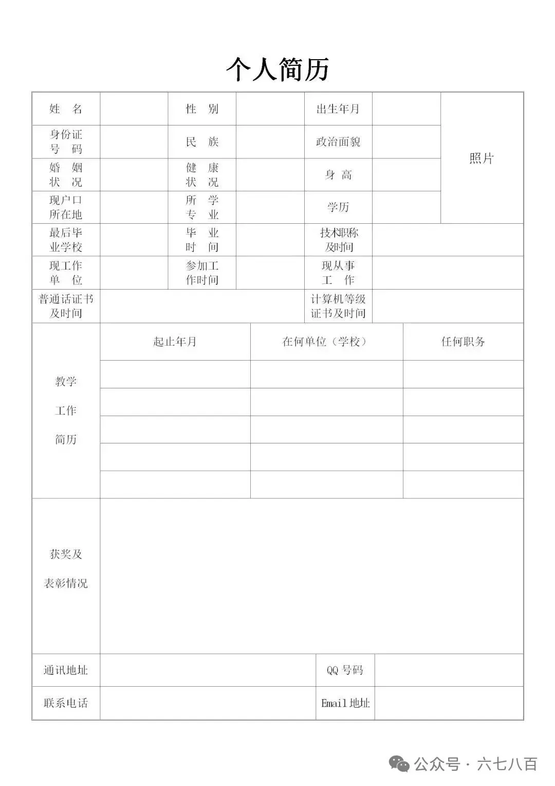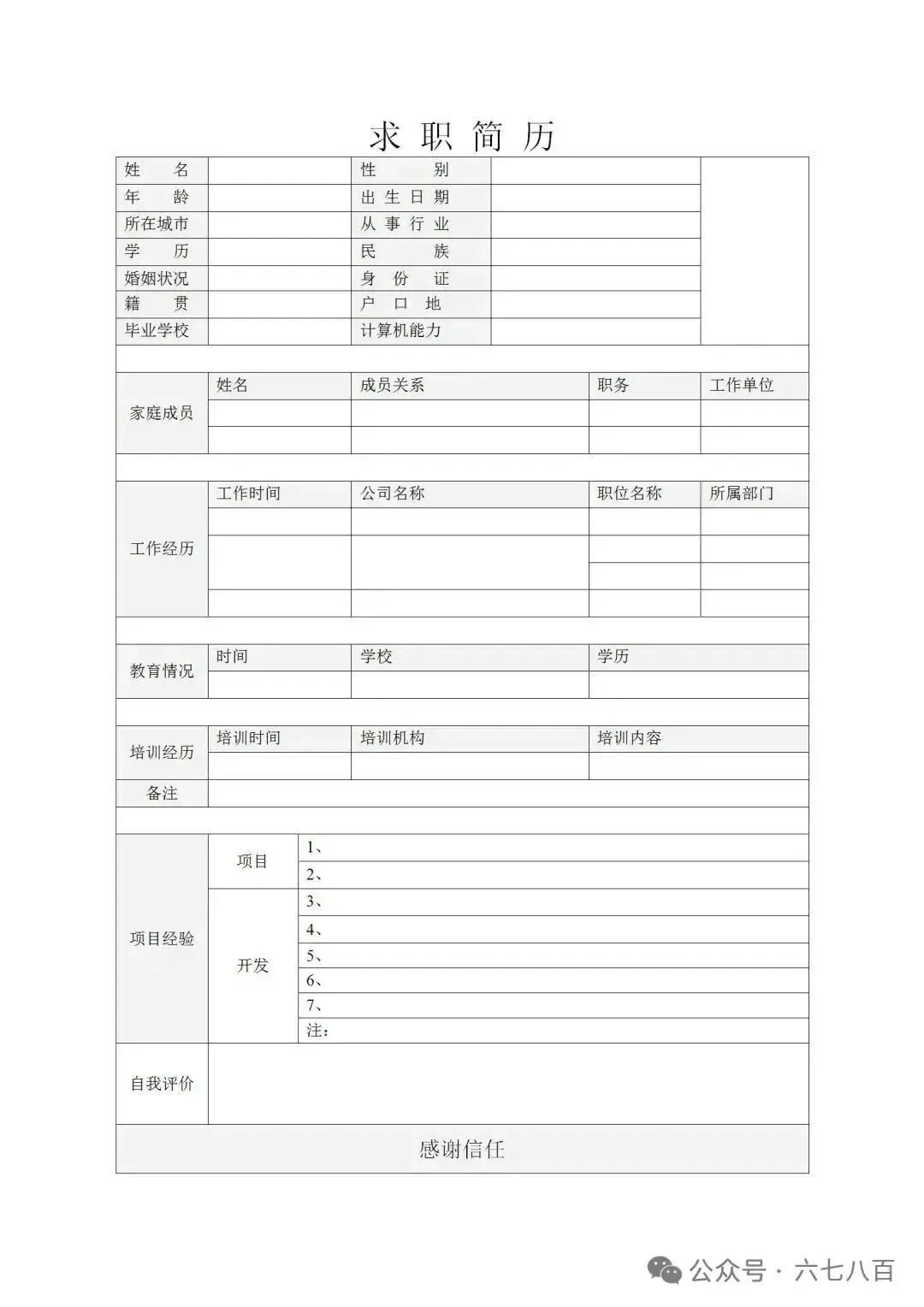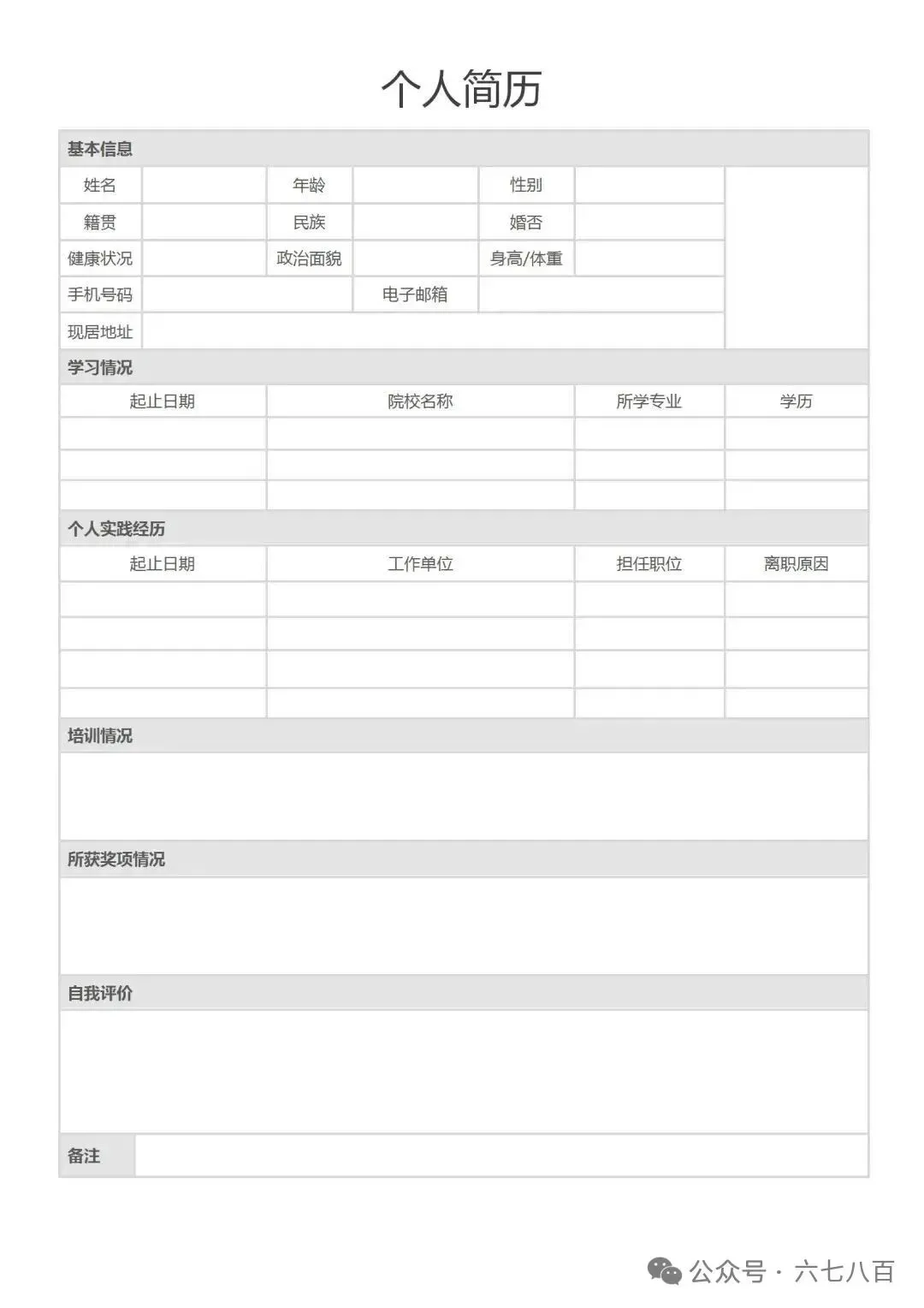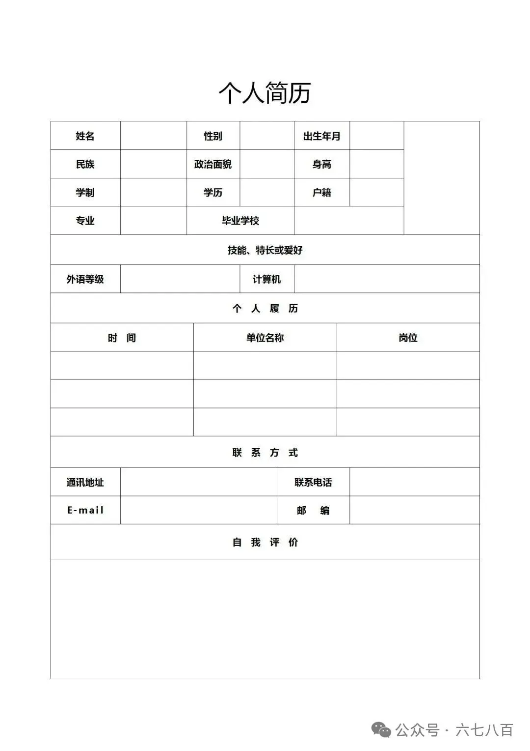个人简历模板(word电子版,免费下载)