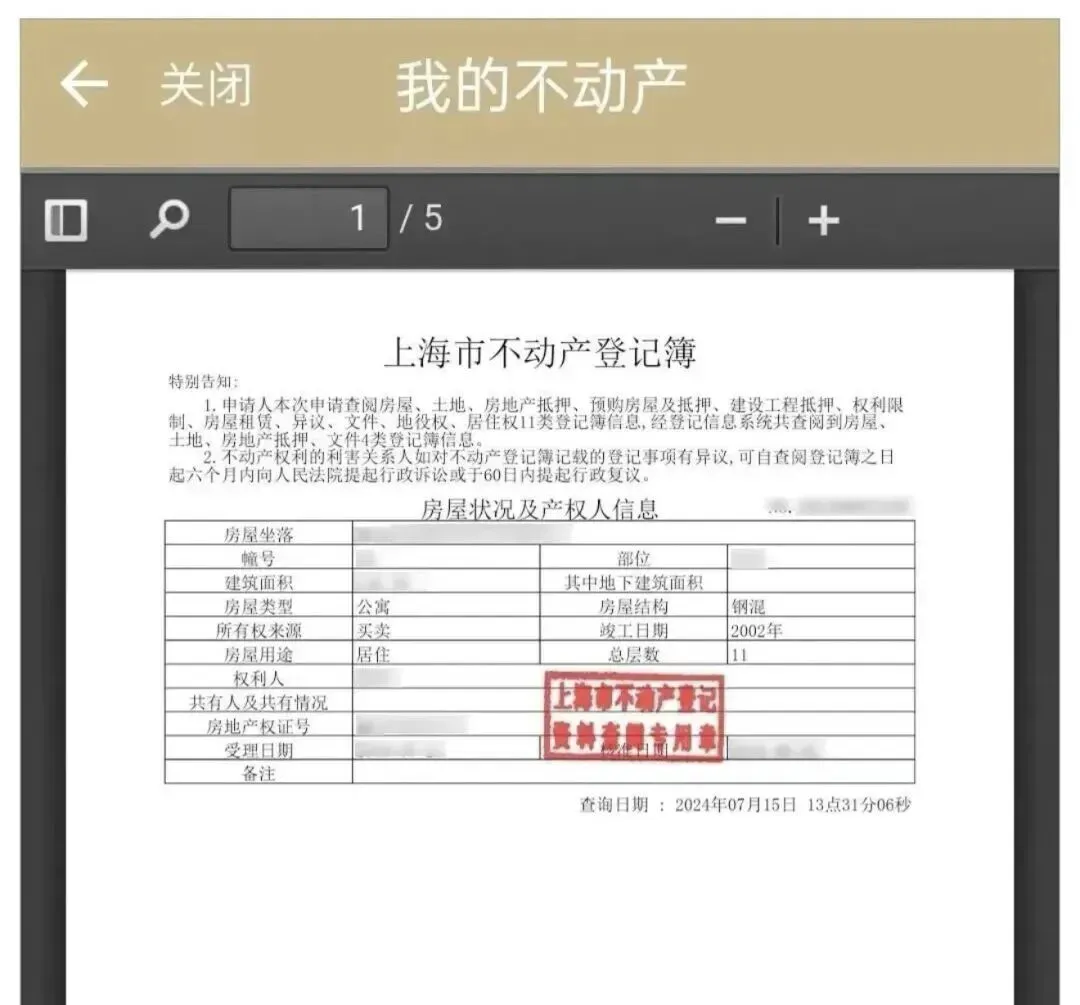 登记簿(产调)提供每套房屋的详细登记信息 正常是三页有抵押是四页。