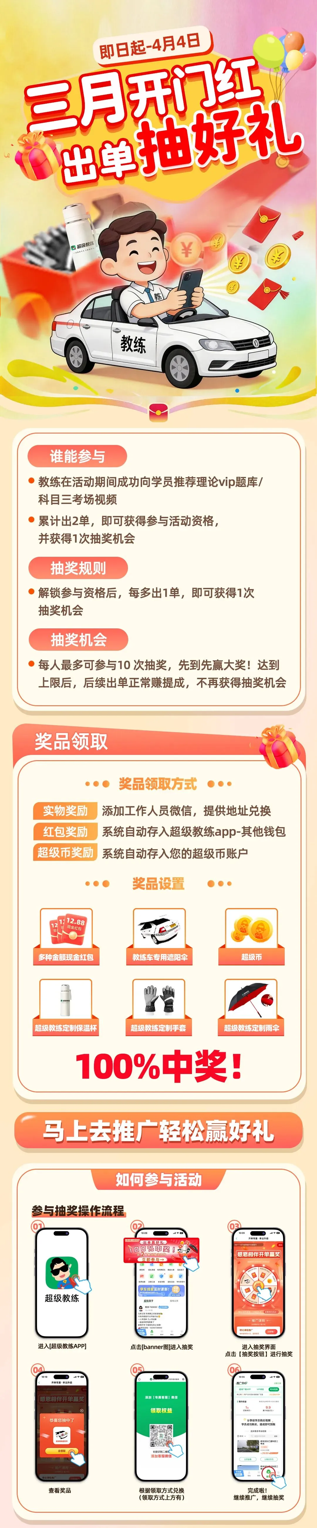 福利升级!开单抽奖赢【超级教练APP】定制遮阳伞/保温杯/现金红包,还有“中奖保护”!