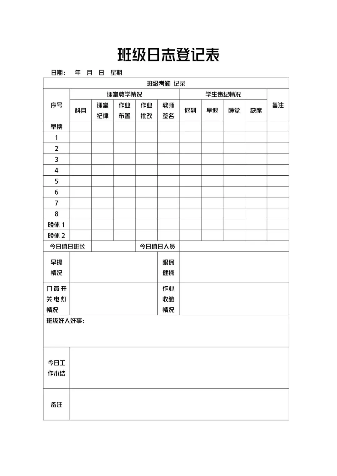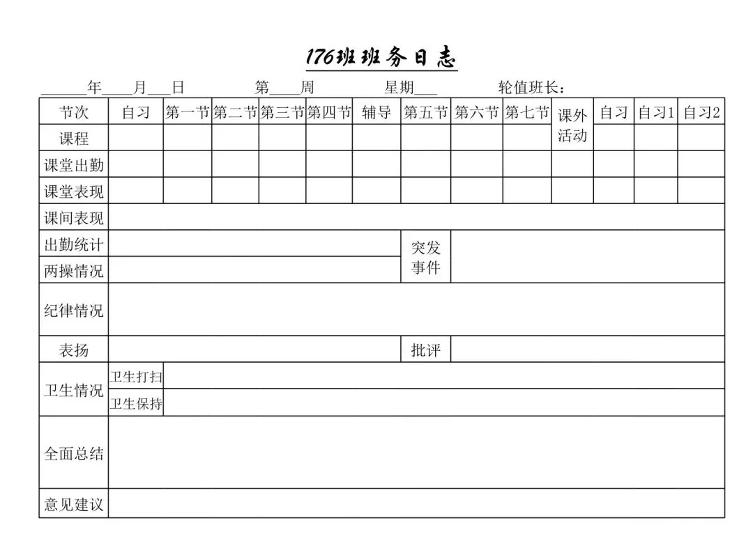 【22款】班务日志模板,电子版可编辑打印 资料无偿分享,点击底部左下方“阅读原文”,进入下载页面! #小学班务日志记录表#班级日志记录表模板#班务日志记录表内容#班务工作记录每周记事#班务日志每周小结#初中班务日志模板#班级日志模板简短#班务日记范例有哪些#班务日志内容40篇#班级日志表格模板# 资料下载链接: 「【22款】班务日志模板」https://pan.quark.cn/s/5c67f8b654be 2种下载方式: 1.复制链接,在微信中发给自己,再点开链接,即可转存下载 2.复制链接,在浏览器中打开,转存文件 以下为部分模板展示,完整版请到文末保存下载 点击左下角阅读原文获取资料 记得给个点赞和在看 点击左下方“阅读原文”,进入下载页面