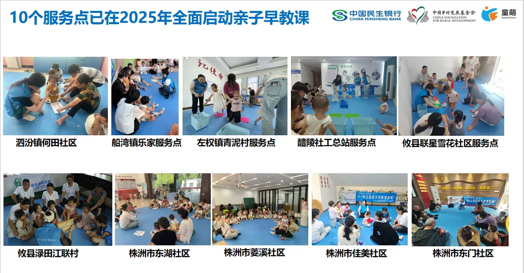 2025年,在中国民生银行与中国乡村发展基金会的支持下,“儿童早期发展区域支持计划”正式落地湖南株洲。一年来,项目通过“专业赋能+小额资金+全程陪跑”的模式,与株洲民政、株洲市社工总站深度合作,在醴陵、攸县等地培育了一批“带不走的亲子早教力量”,累计开设10个亲子早教服务点,92节公益早教课,服务超过230户0-3岁婴幼儿家庭。