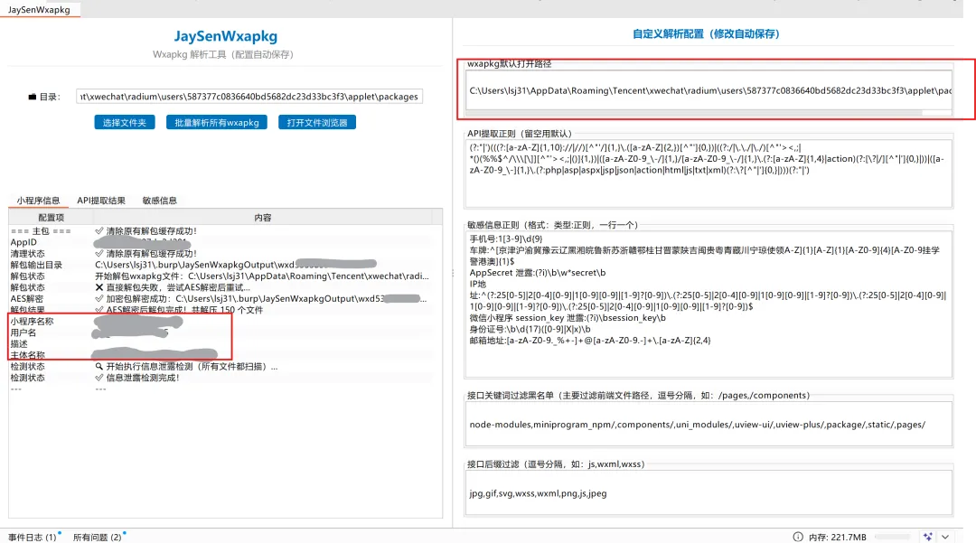 以前老版本的微信很多师傅都登不上了,目前市面上也好像没有针对微信新版本的小程序反编译解包并提取敏感信息的插件,jaysenwxapkg 就是一款为了解决此问题而基于burp api 2025.8开发的插件