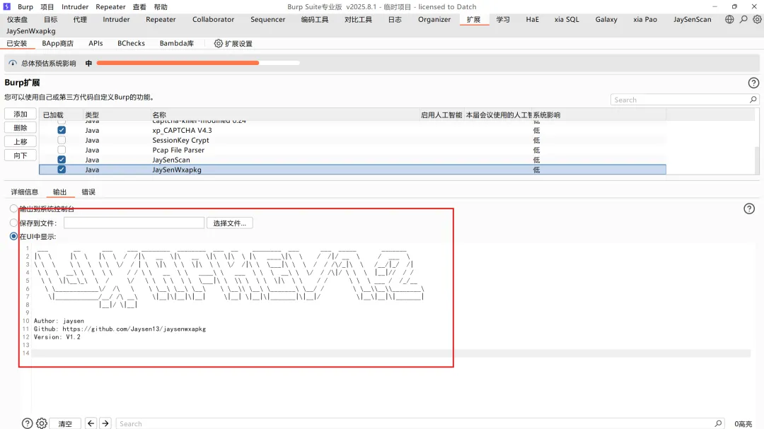 加载在burp插件中,成功后如下(若报错请更新burp版本到2025版本)