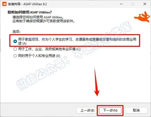 5.选择 “家用项目….非商业用途 (A)”,点击“下一步”