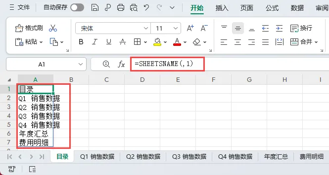 做年度报表时,工作簿里堆了七八个工作表(Q1 数据、Q2 数据…),手动写目录又慢又容易漏?