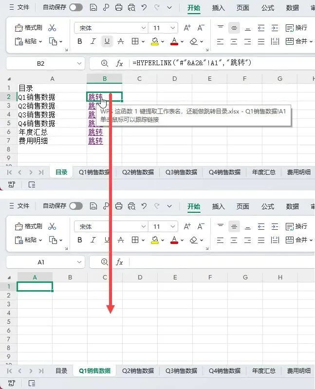 有了这招,不管是做销售报表、项目台账还是库存表,工作表目录再也不用手动写,点击就能跳转,效率直接拉满!赶快点赞、收藏起来吧!