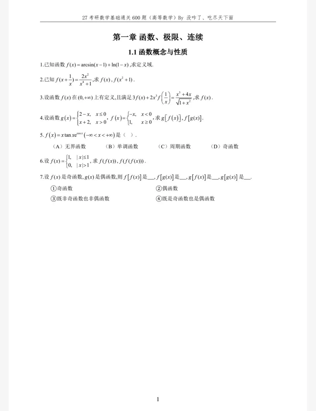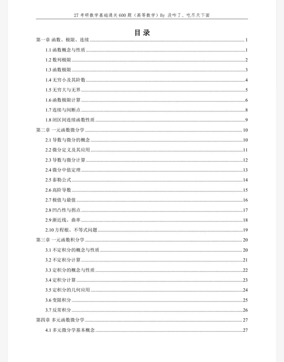 27没咋了《高数基础通关600题》(电子版pdf) 01 内容展示 Hello!今天给大家带来了27没咋了高数基础通关600题! 领取方法往下翻至文末哦。 本期文件展示: 02 领取方式 第一步:点击上方卡片关注本公众号 第二步:后台回复关键词:没咋了 需要打印的,可以点击下方 5分钱打印 若资料失效,加微信kaoyan782补链接