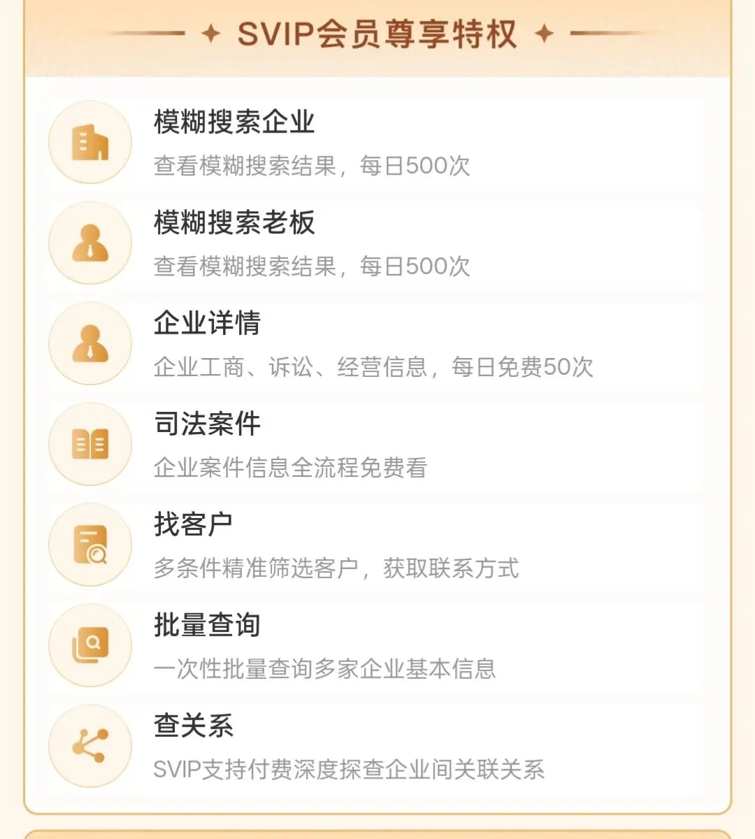 孙学长无意间发现了一款查企业信息的软件,目前可以免费获得五年SVIP会员,孙学长感觉各位朋友肯定会用到,特此分享!