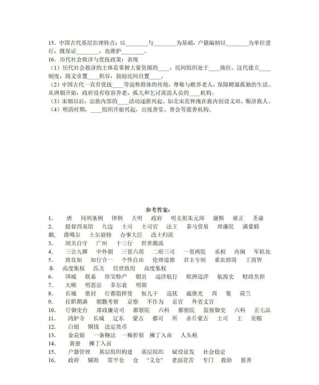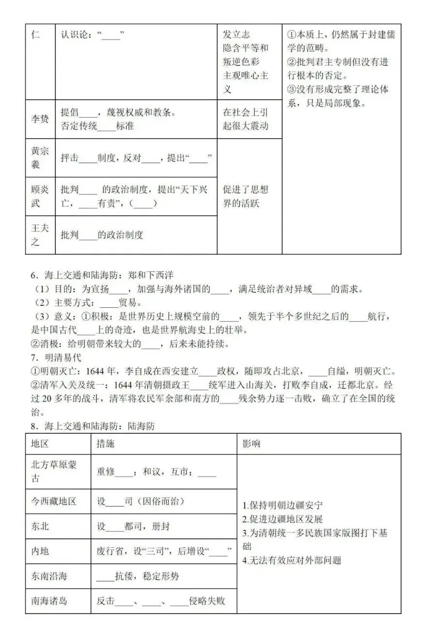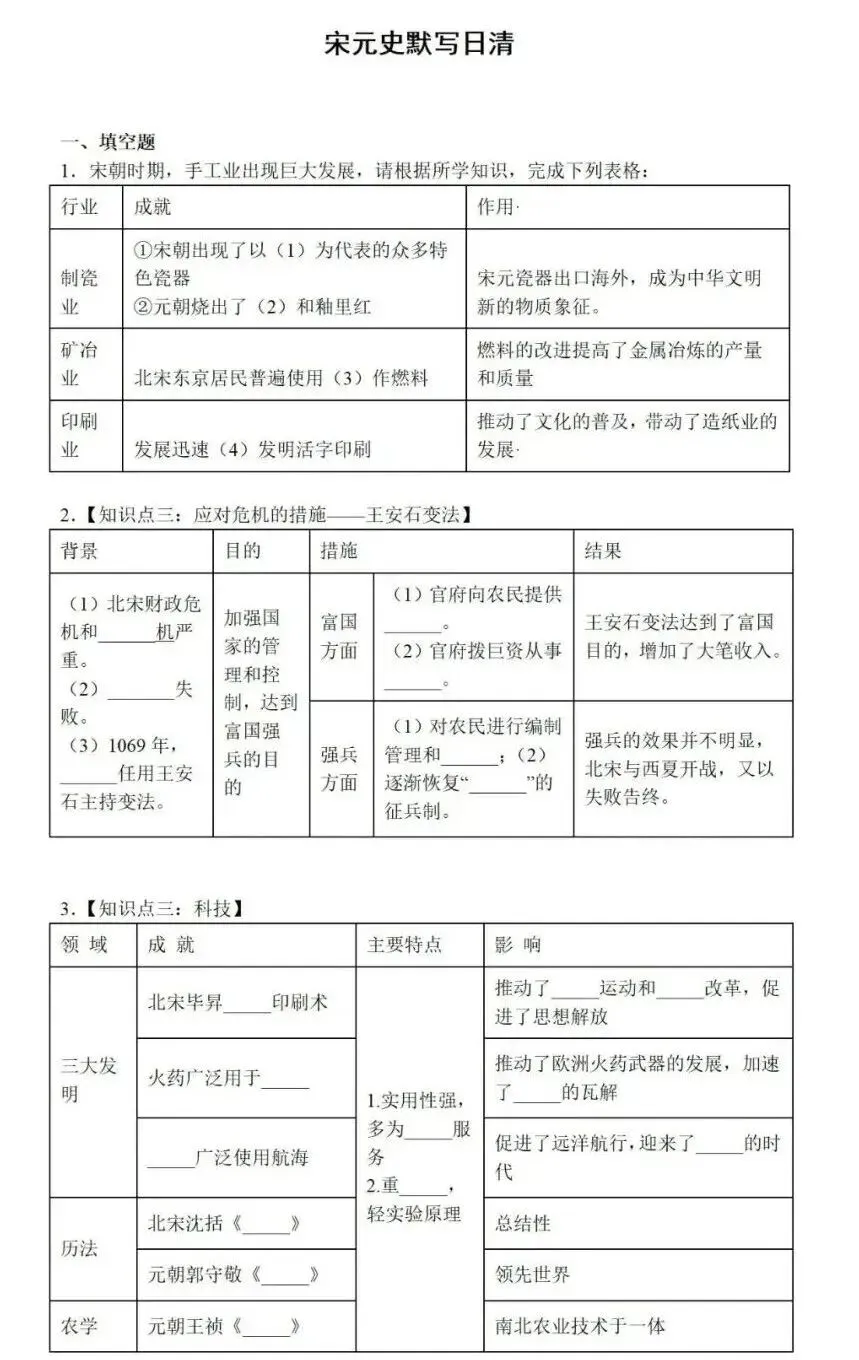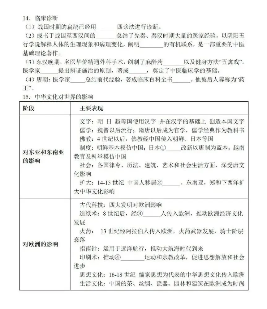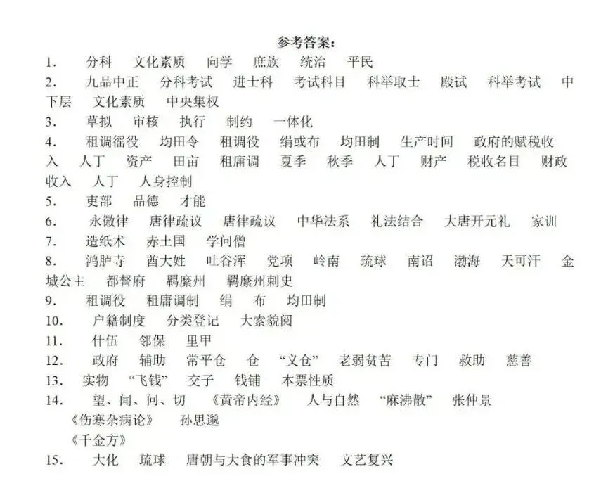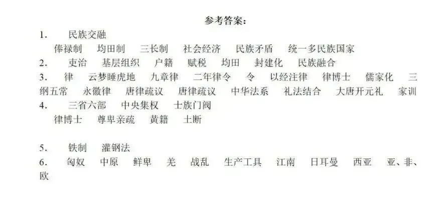 中国古代史专题知识默写,可打印! 中国古代史专题知识默写 免责声明 1.本公众号部分转载的文章、图文、视频来自网络,其版权和文责属原作者所有,若来源标注错误或侵犯到您的权益,烦请告知,我们将立即删除。 2.本公众号编辑部工作人员的原创文章,其版权属于我们微信公众号所属主体。 3.本公众号特约稿原创文章,其版权和文责属作者所有。 4.若要转载原创文章用于商业用途,请联系我们,未经同意不得转载。任何转载请注明文章来源。如有问题,请联系我们,谢谢! | 标签:高考历史 高中历史 | 来源:网络 | 商务合作微信:JJYYshangwu | 更多内容请关注微信公众号平台:高考历史 ID:gkls100