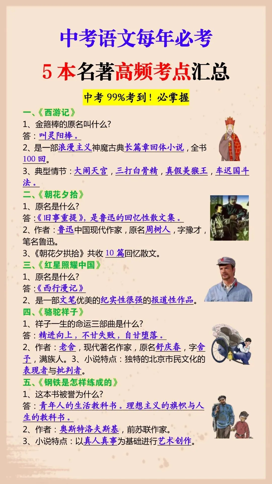 中考语文每年必考5本名著高频考点汇总(可打印)中考99%考到!必掌握! 初中生日常 老师今天整理了中考语文每年必考5本名著高频考点汇总,中考99%考到!必掌握! 电子版阅览 初中生配套学习教辅 如何领取这个电子版资料